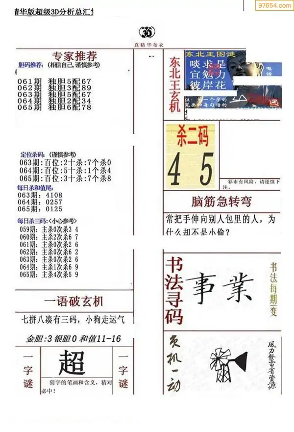 (3)2026064期3D预测总汇全图_福彩3d图谜字谜总汇