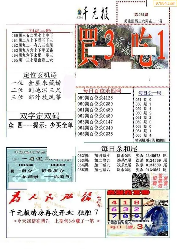 (2)26年065期本期3d图迷汇总_福彩3D图谜总汇图