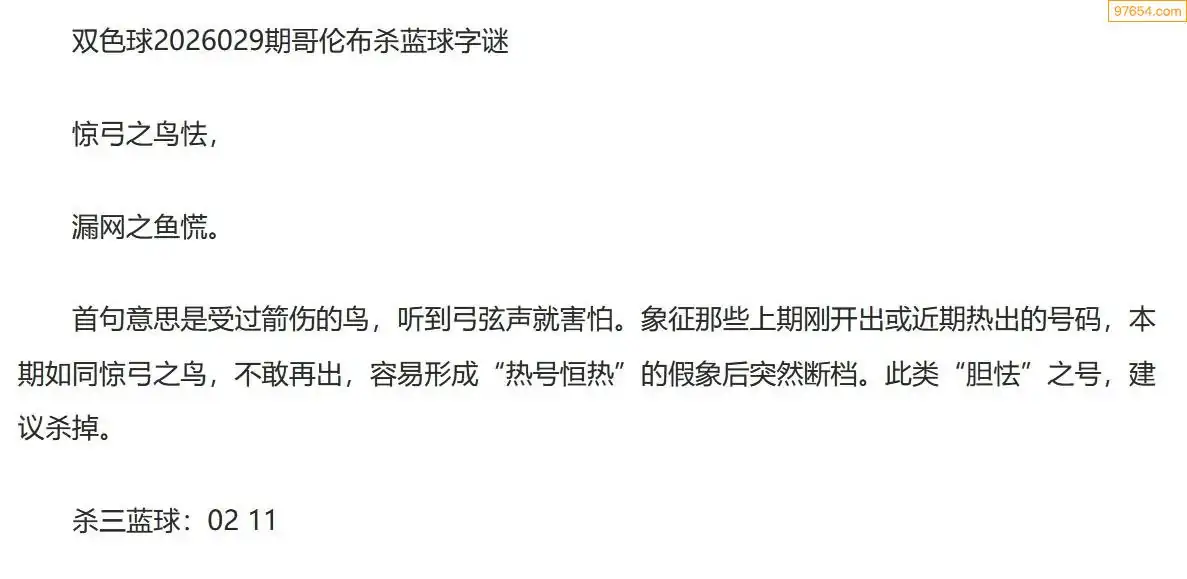 哥伦布双色球26年029期一句杀蓝球字迷