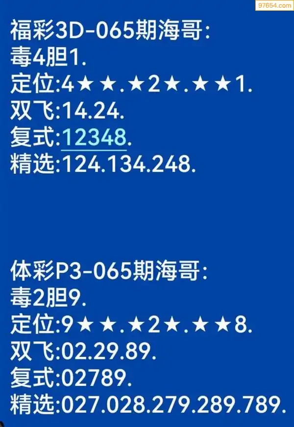 海哥福彩065期3d今日双胆