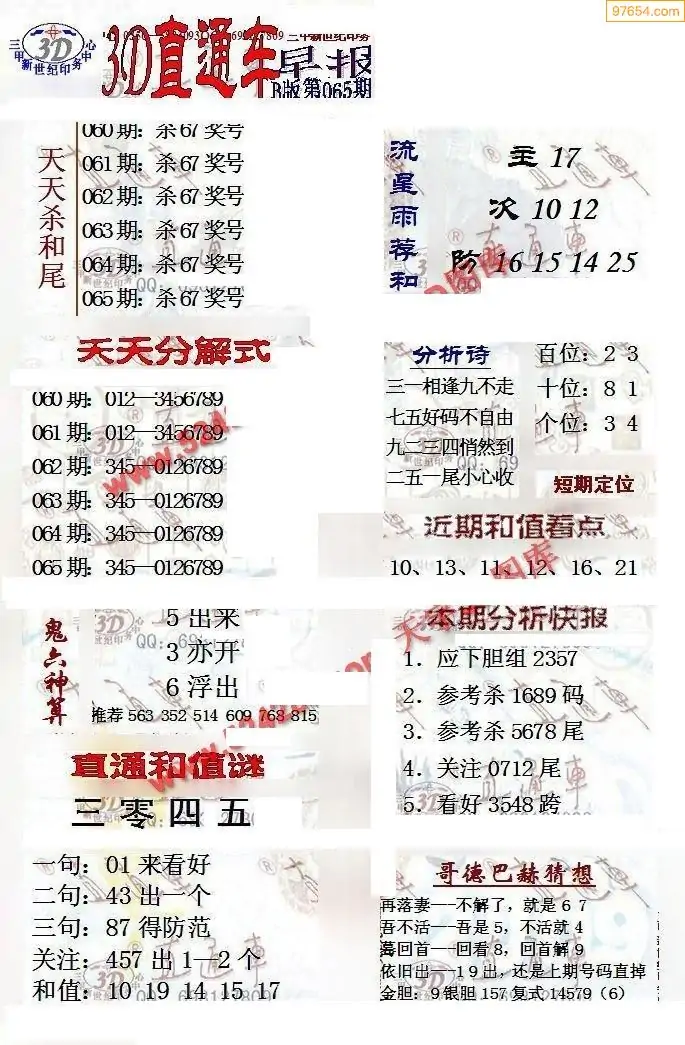 26年065期3D各板块资料整合汇总