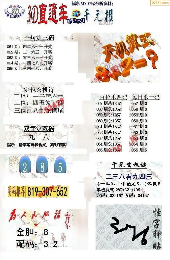 26年065期3d选号彩报图谜画谜