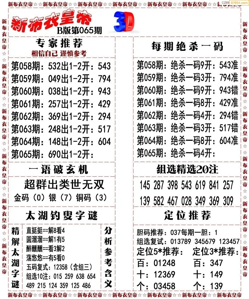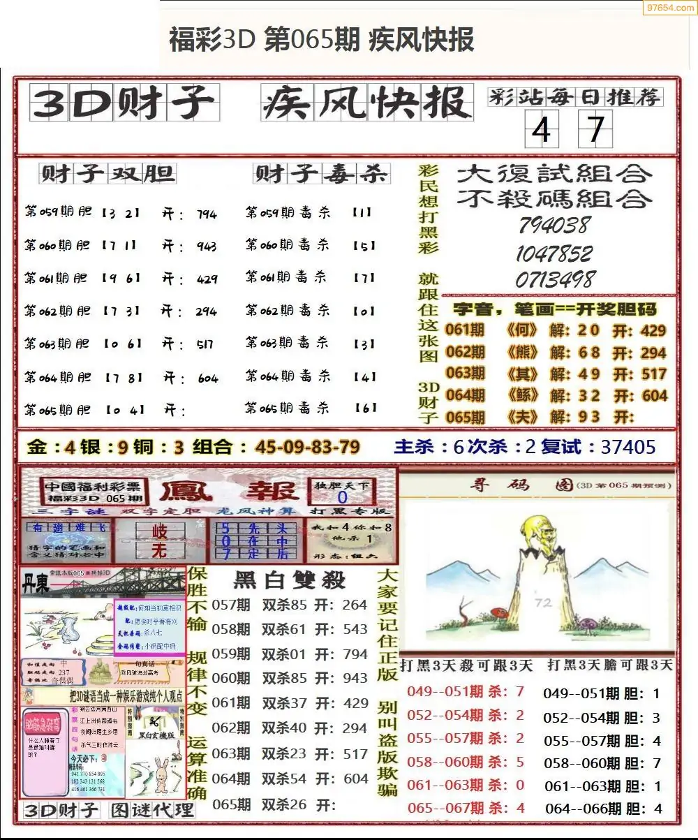 (3)2026065期3D预测总汇全图_福彩3d图谜字谜总汇