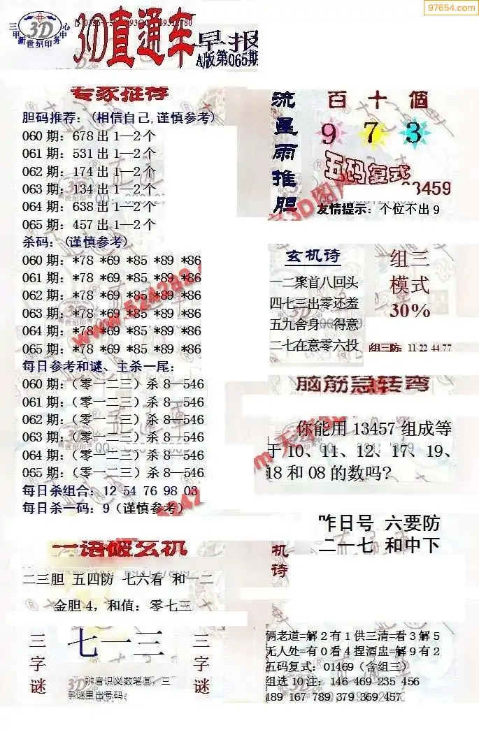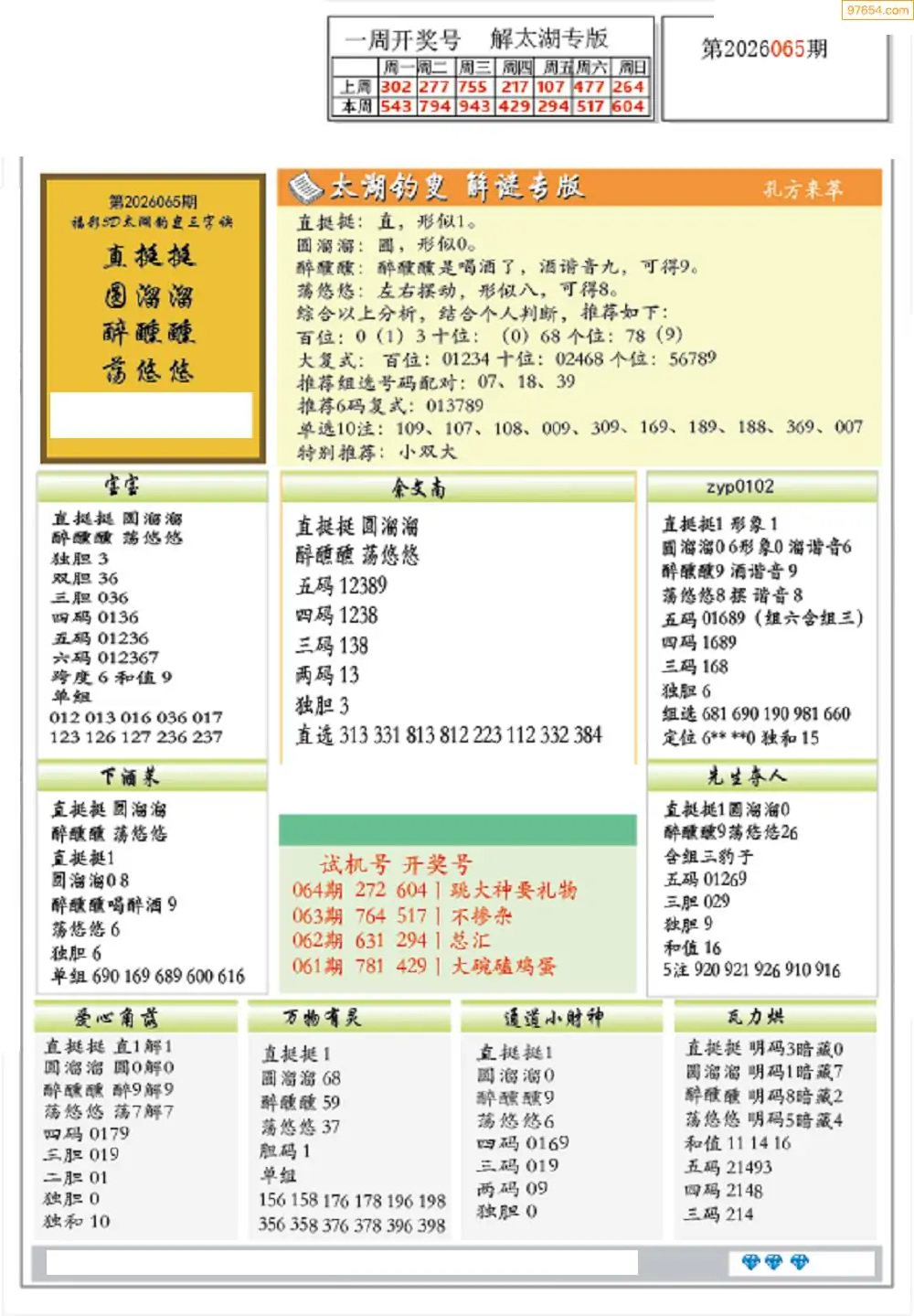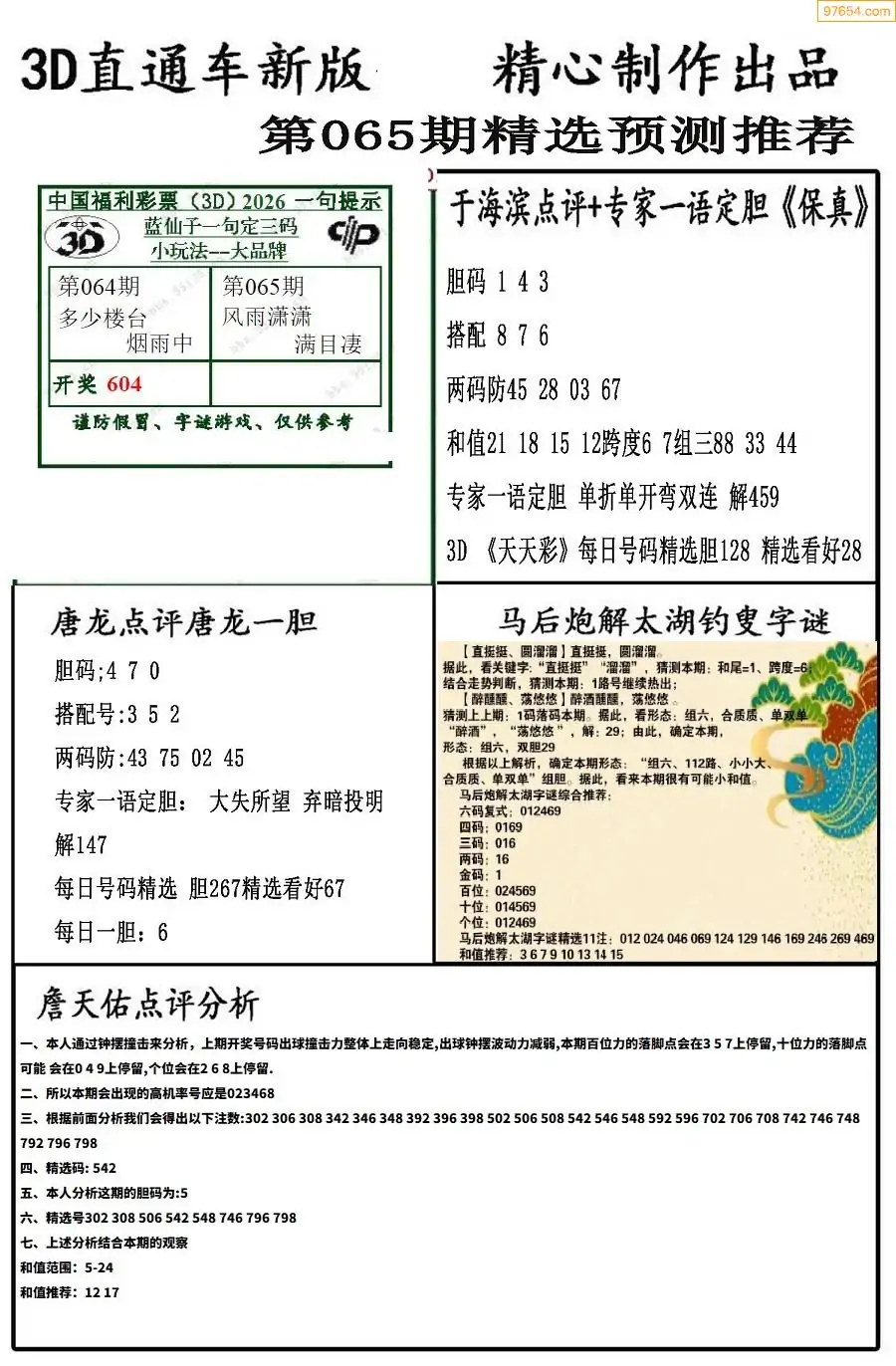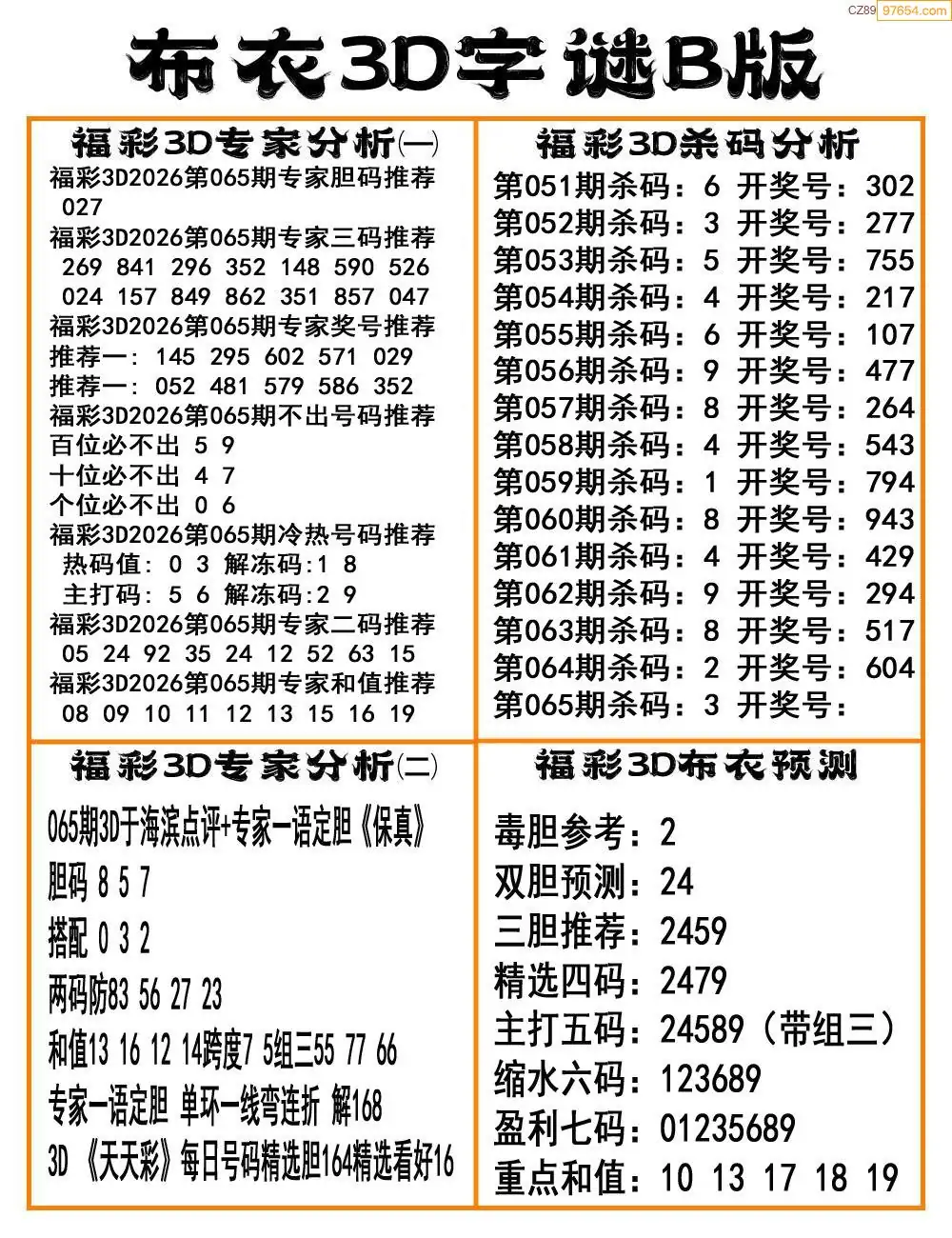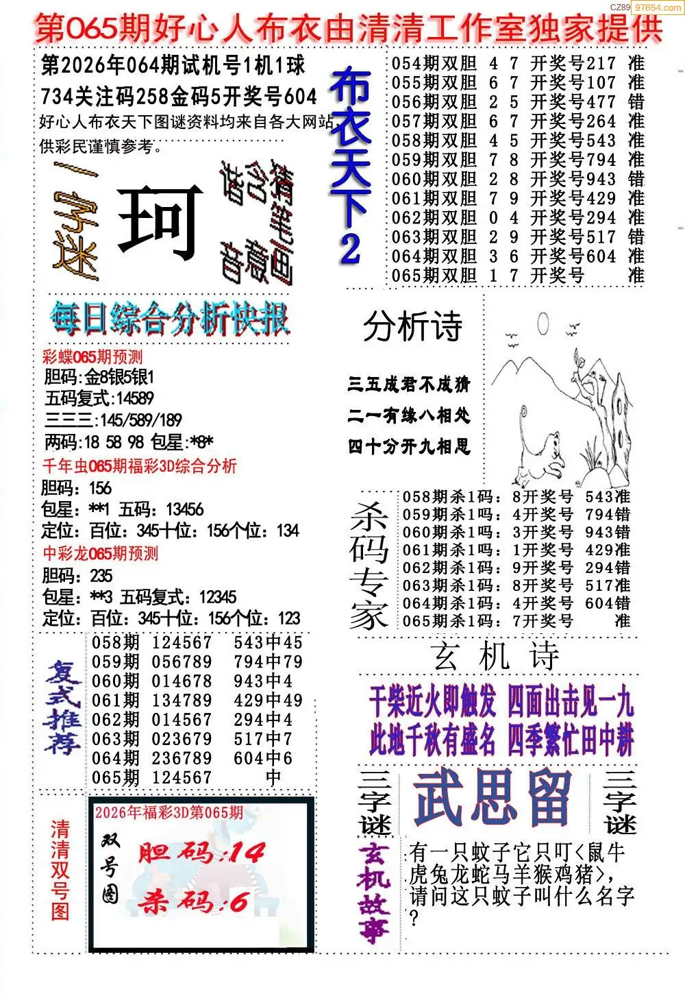 (2)26年065期本期3d图迷汇总_福彩3D图谜总汇图