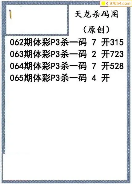 26年065期天龙体彩P3杀码图谜