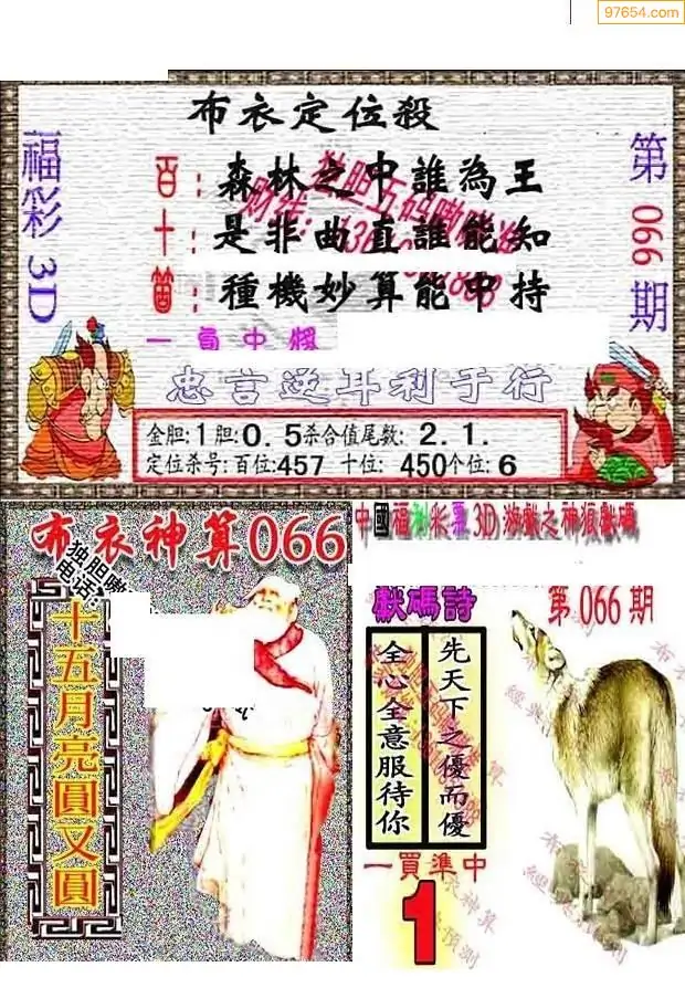 福彩066期3d真精华布衣+布衣早报(转载)