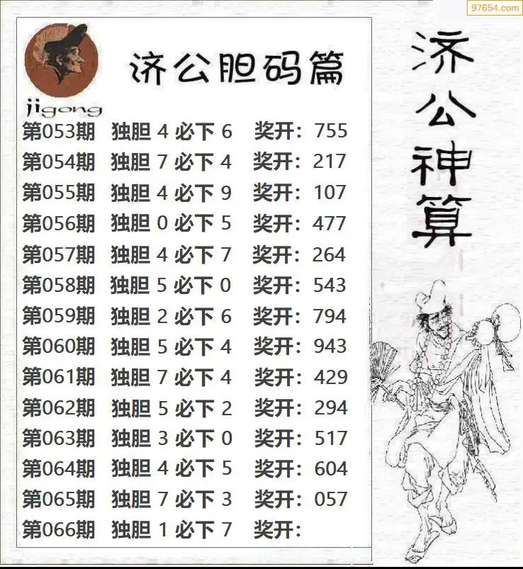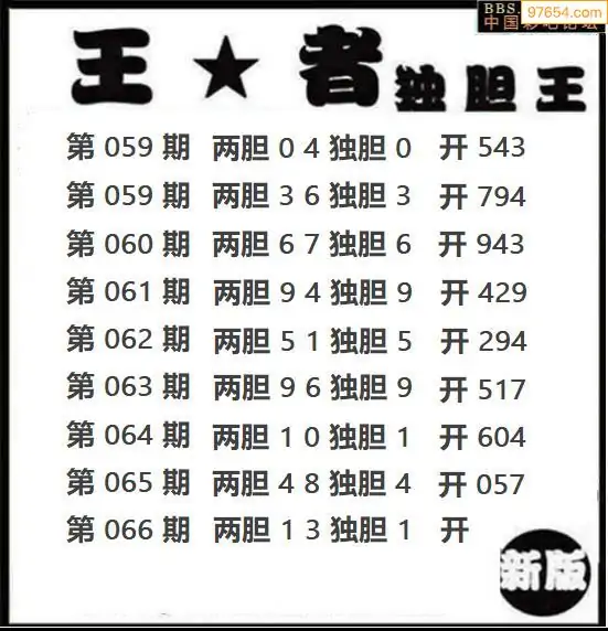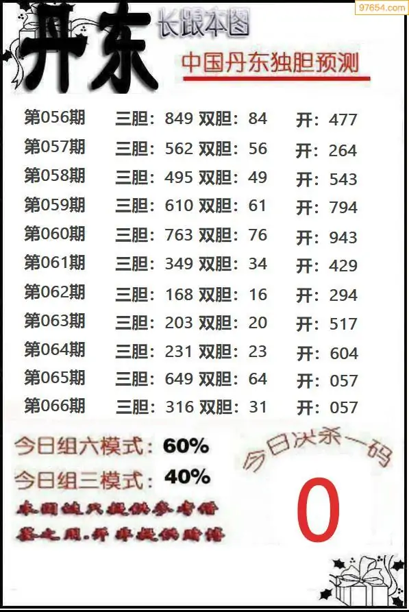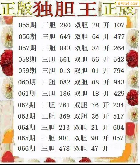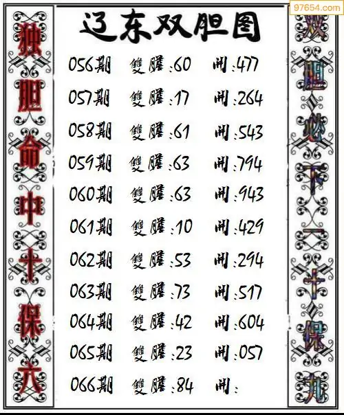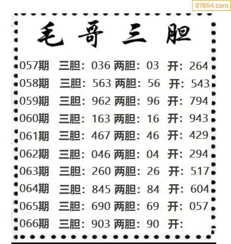 066期97654本站收集胆码出号预测
