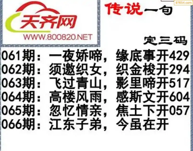 福彩3d26年066期字谜传说一句定三码