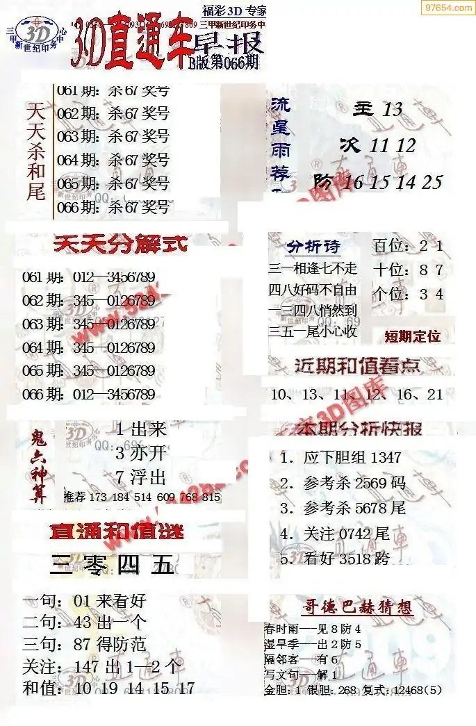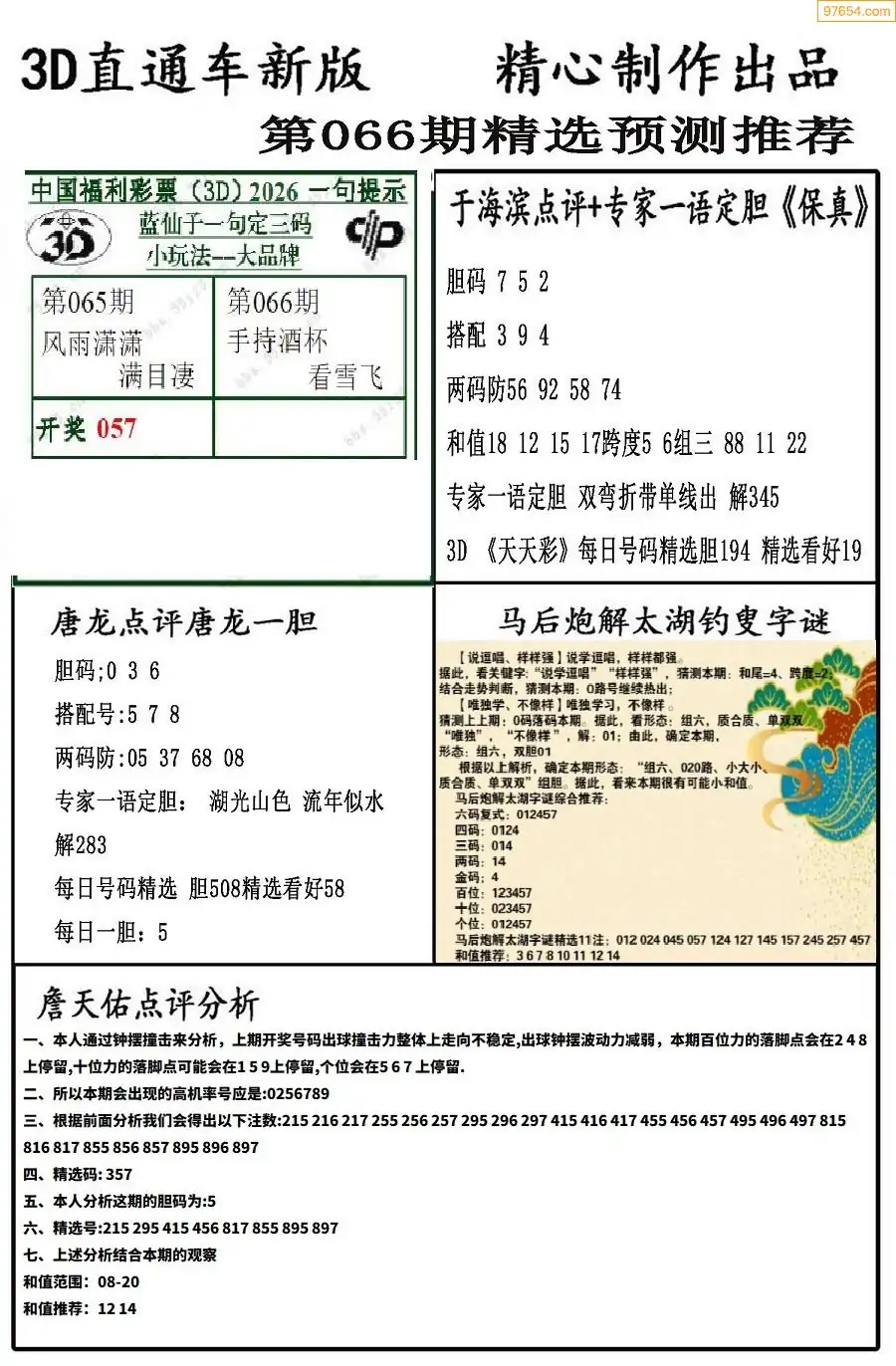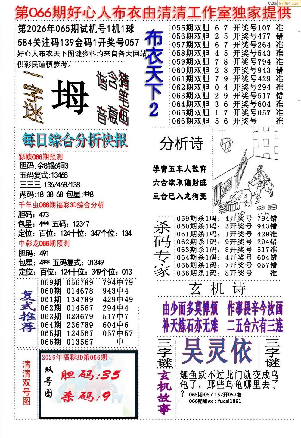 (2)26年066期本期3d图迷汇总_福彩3D图谜总汇图