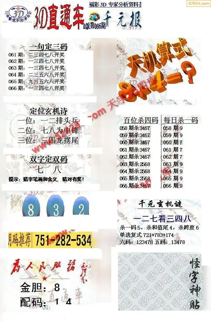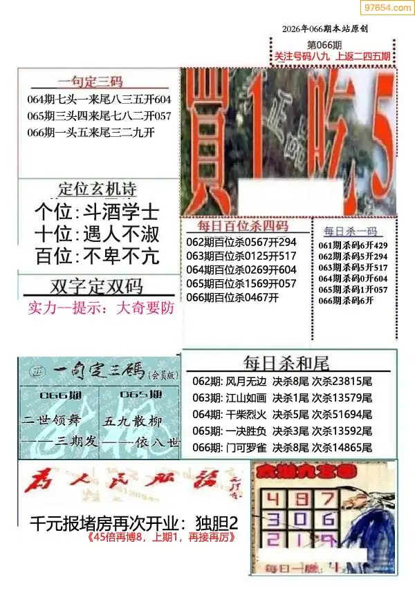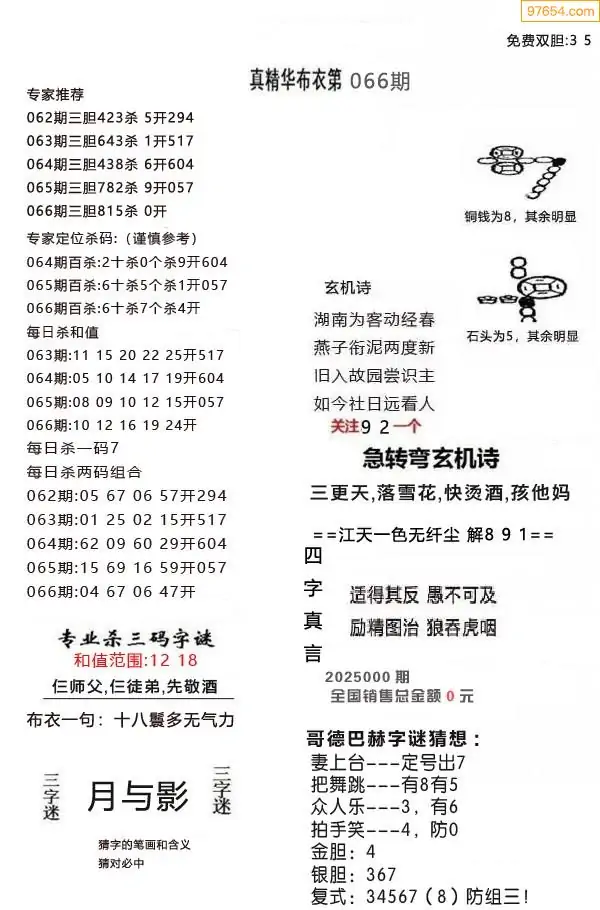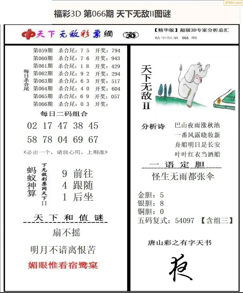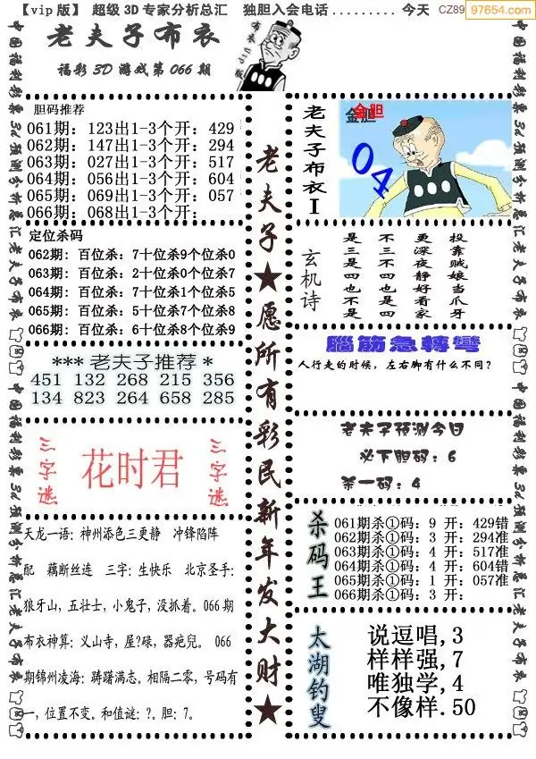 (2)26年066期本期3d图迷汇总_福彩3D图谜总汇图