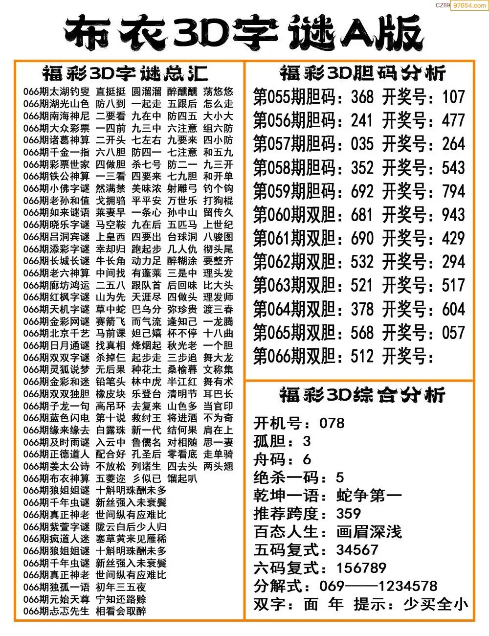 (3)2026066期3D预测总汇全图_福彩3d图谜字谜总汇