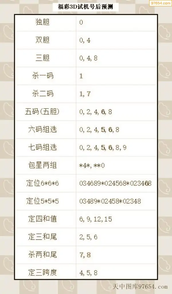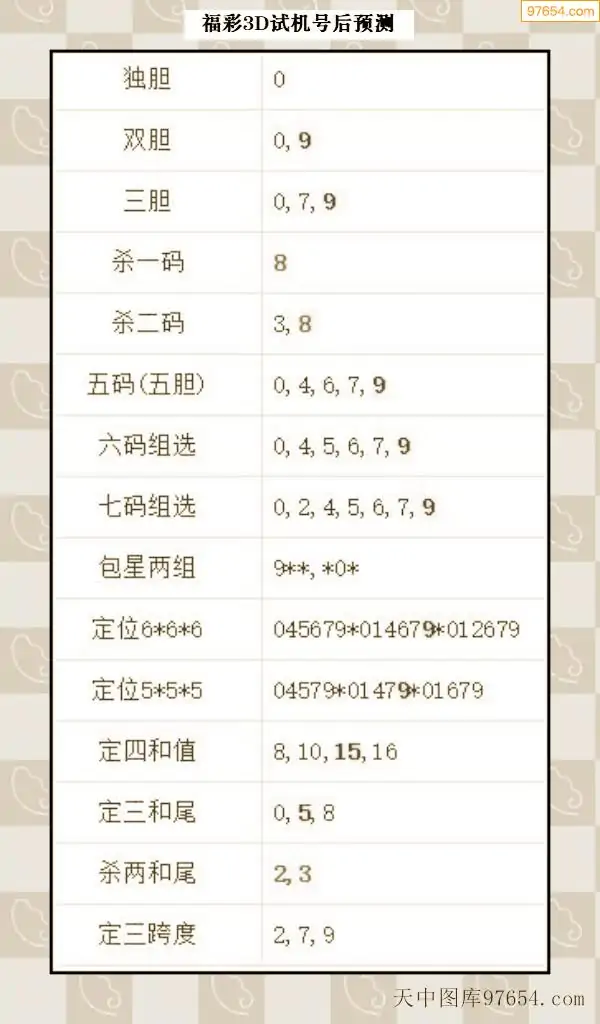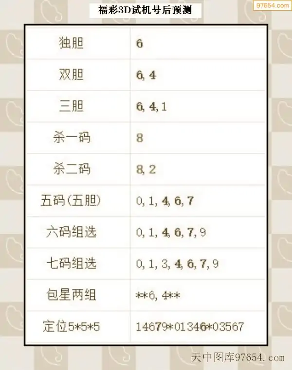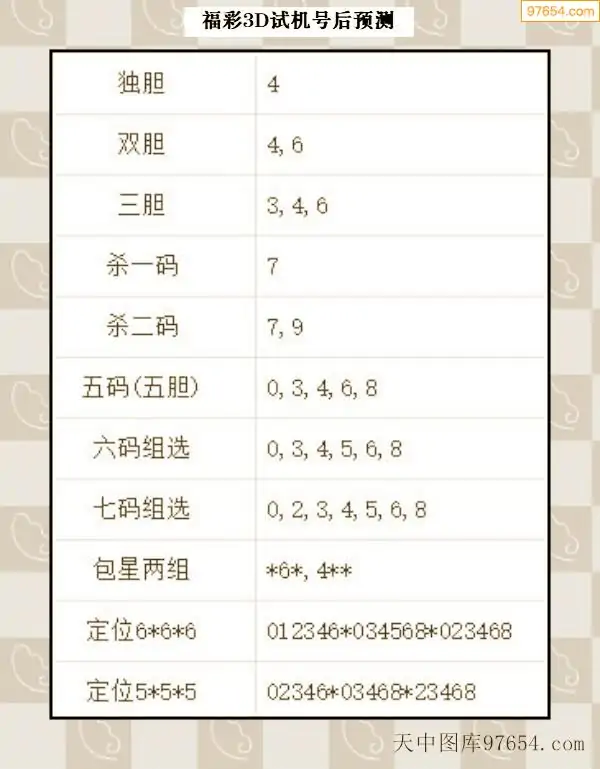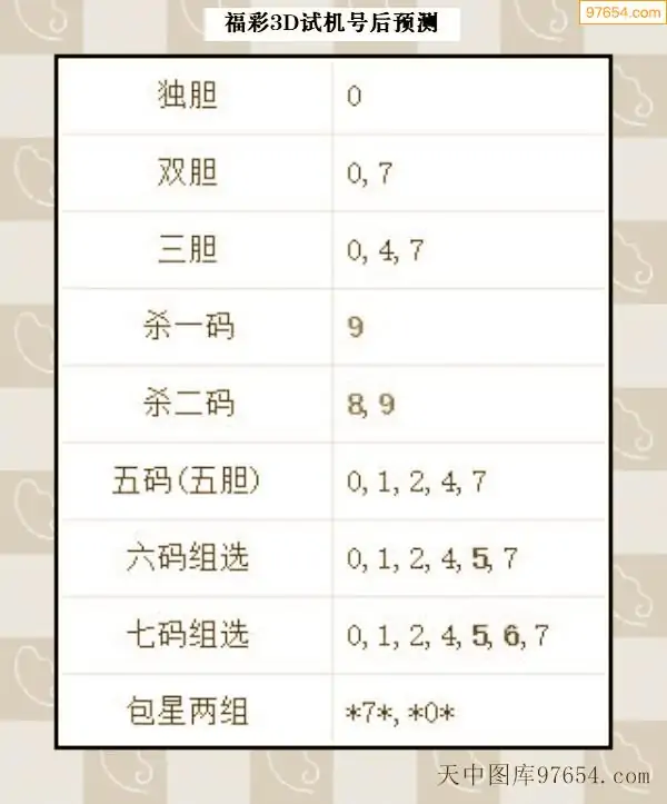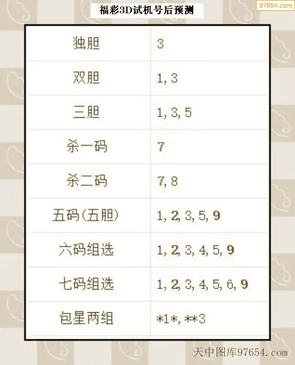 066期西南胆王预测本期3D开奖结果
