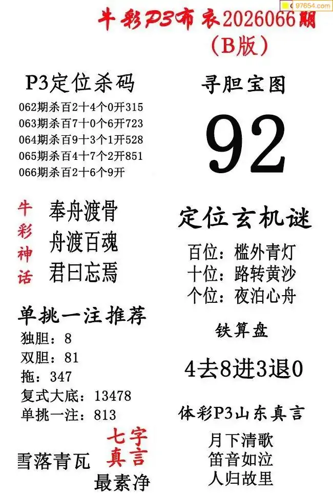 2026年066期北盟天机图+p3仙机图谜 _排三图谜专区
