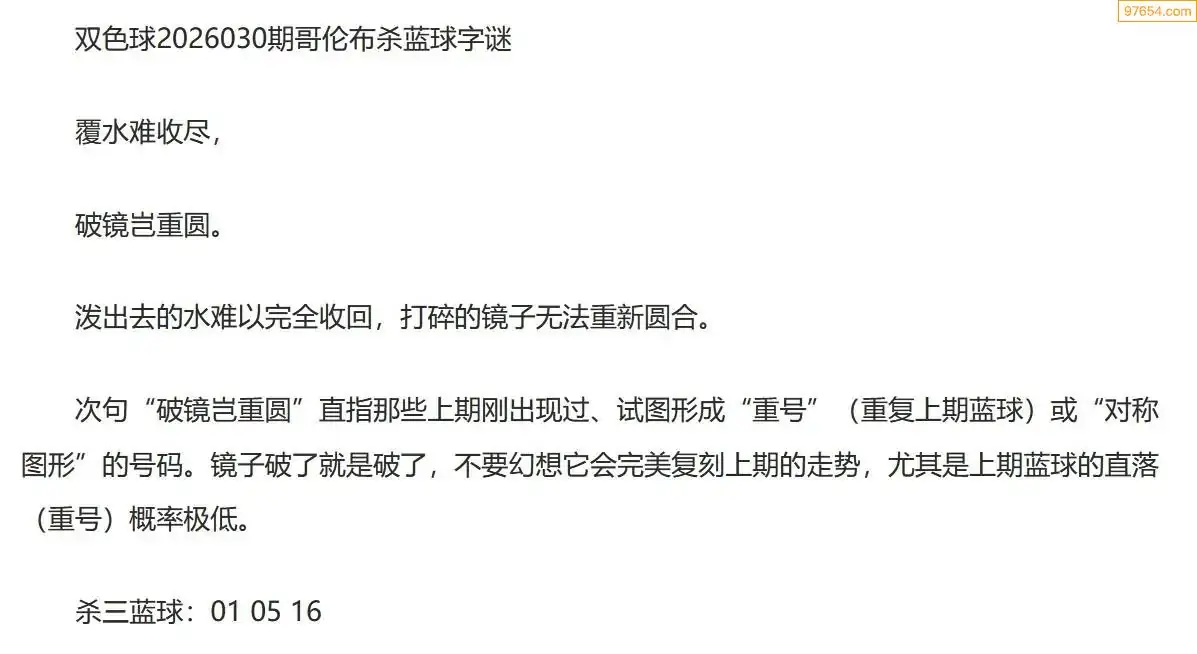 030期牛彩双色球字迷诗迷汇总(天中整理)