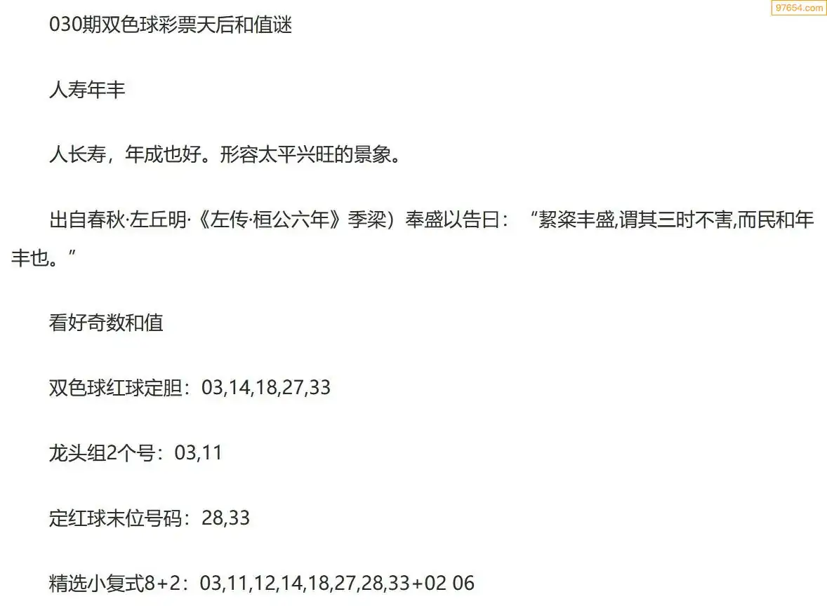 030期牛彩双色球字迷诗迷汇总(天中整理)