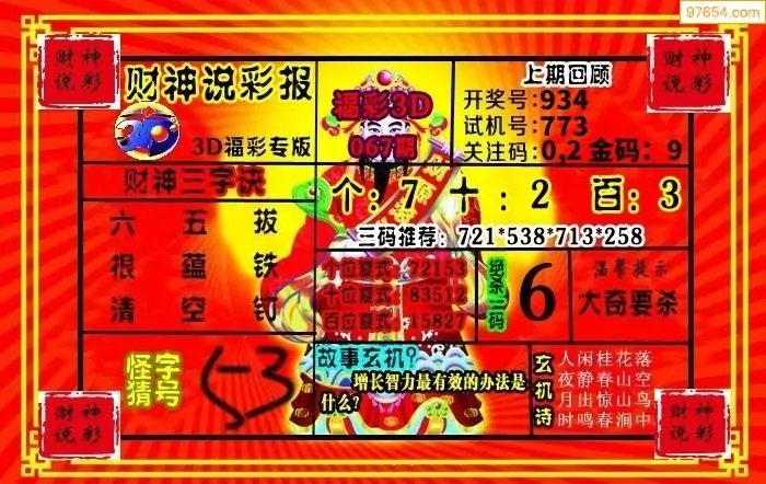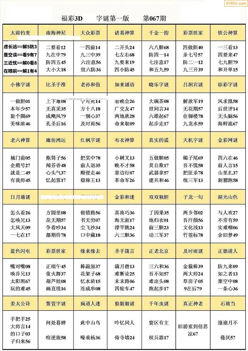 (3)2026067期3D预测总汇全图_福彩3d图谜字谜总汇
