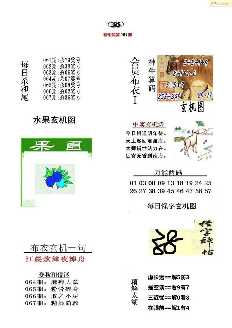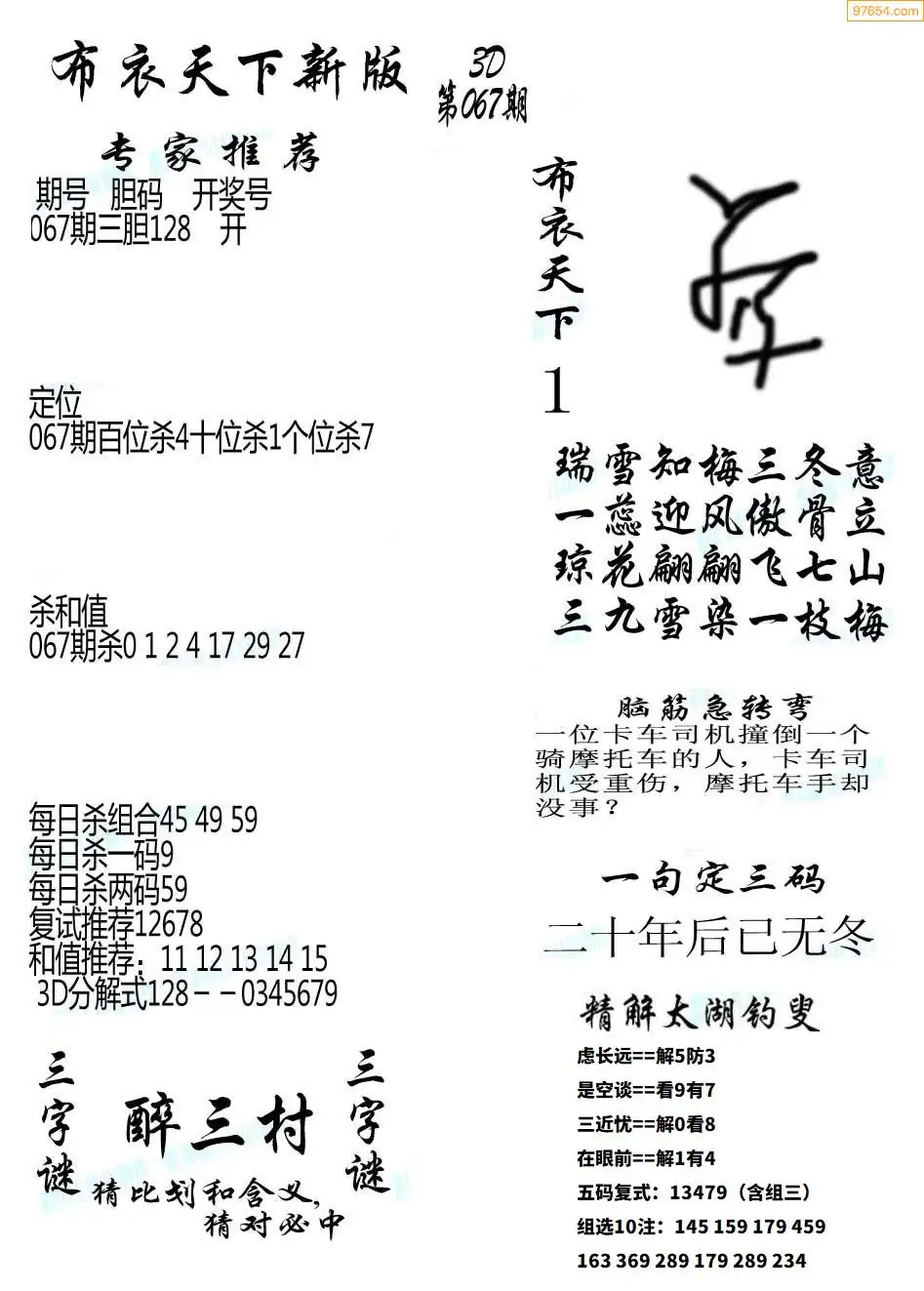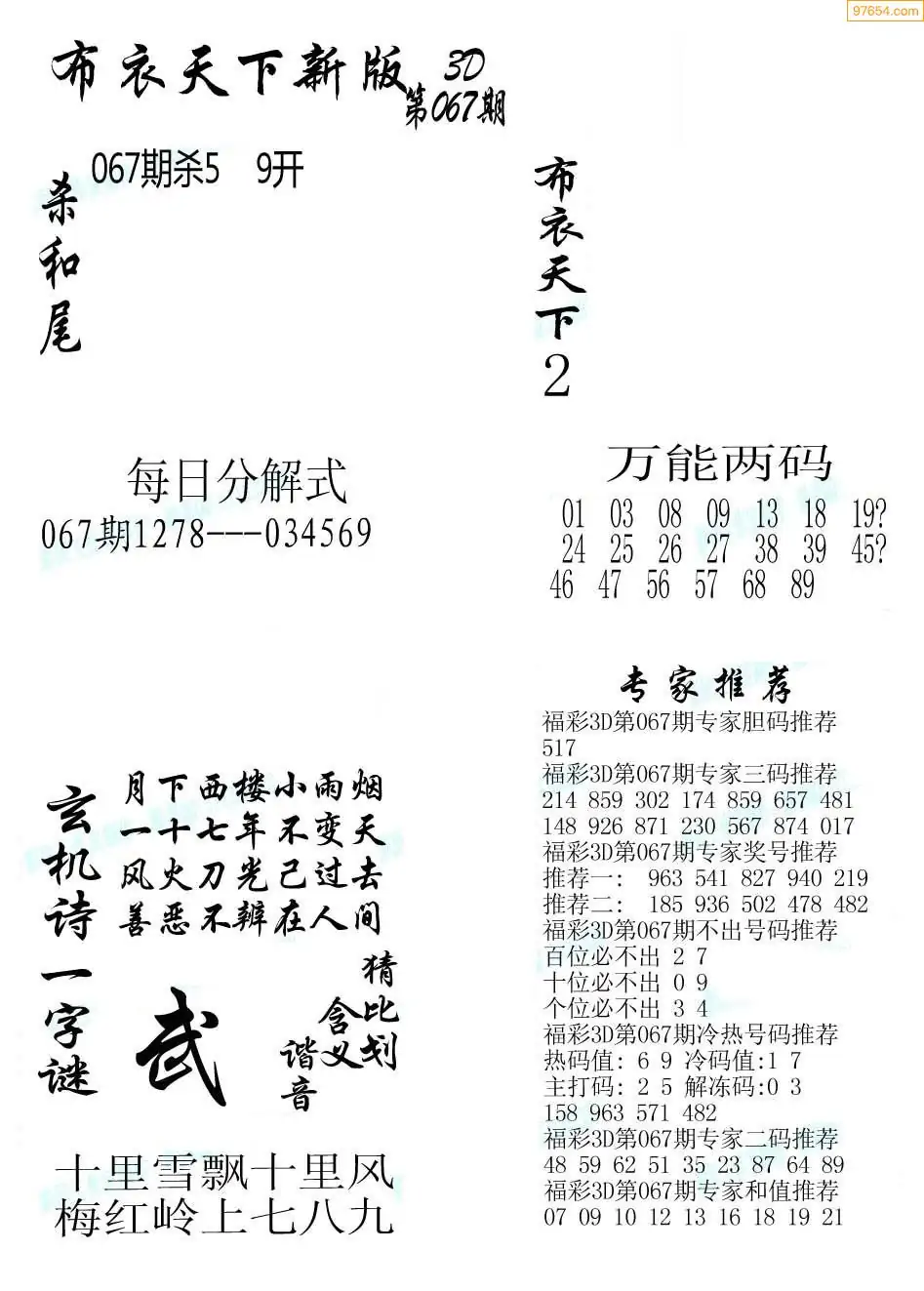 (2)26年067期本期3d图迷汇总_福彩3D图谜总汇图