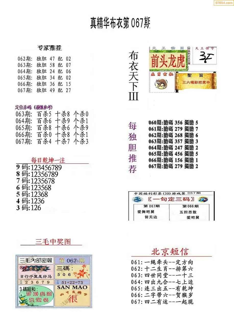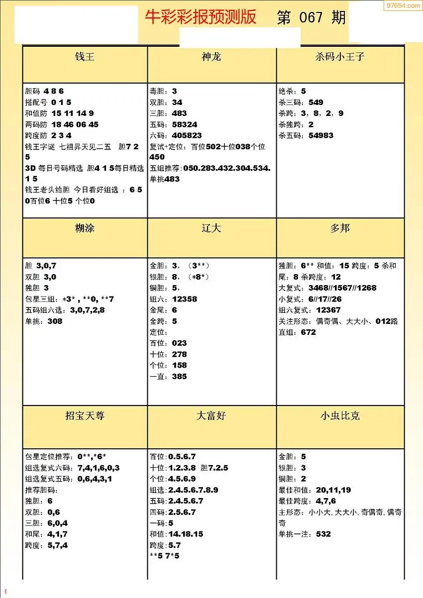 (8)26年067期今日3d各类彩报汇总