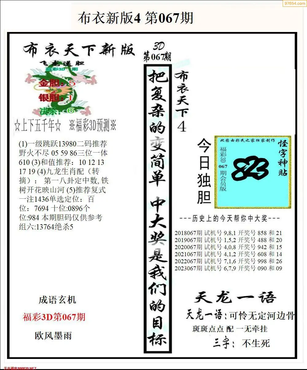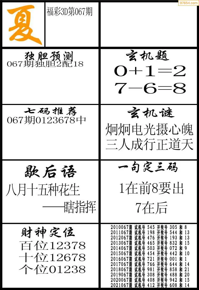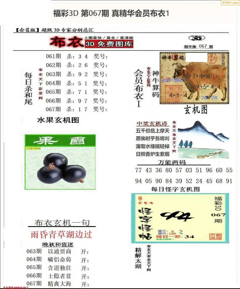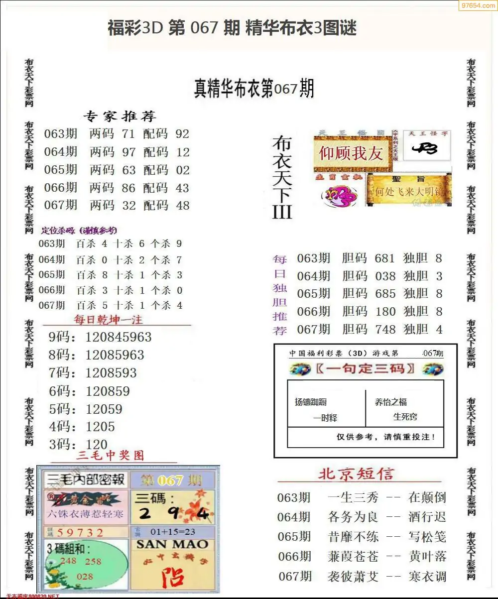 (2)26年067期本期3d图迷汇总_福彩3D图谜总汇图