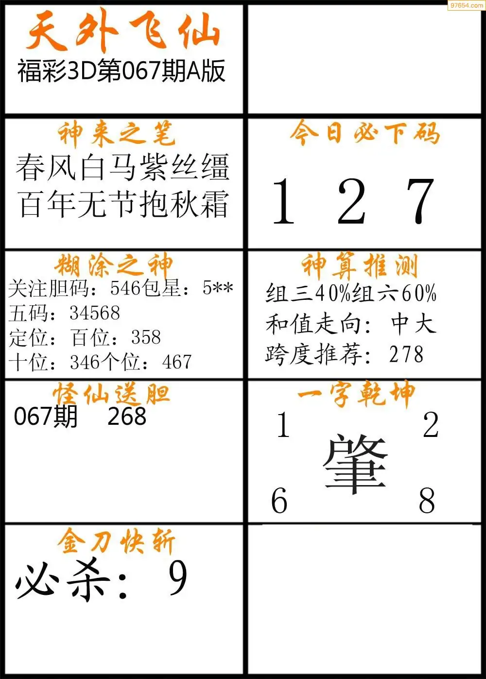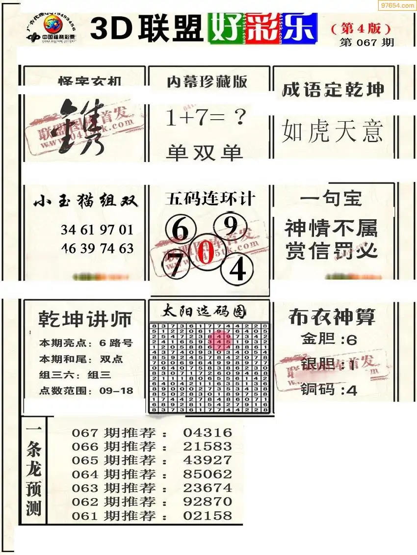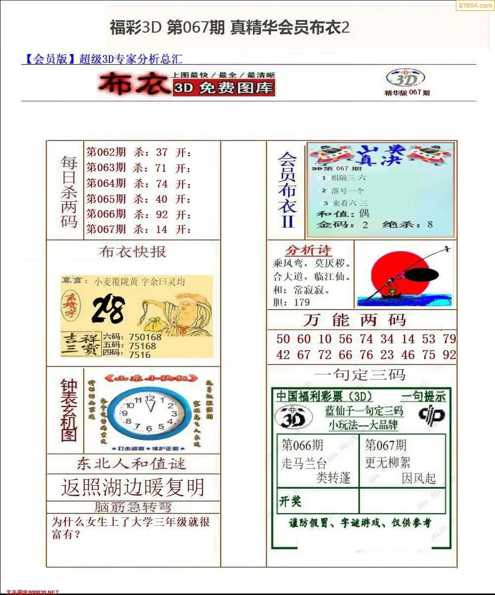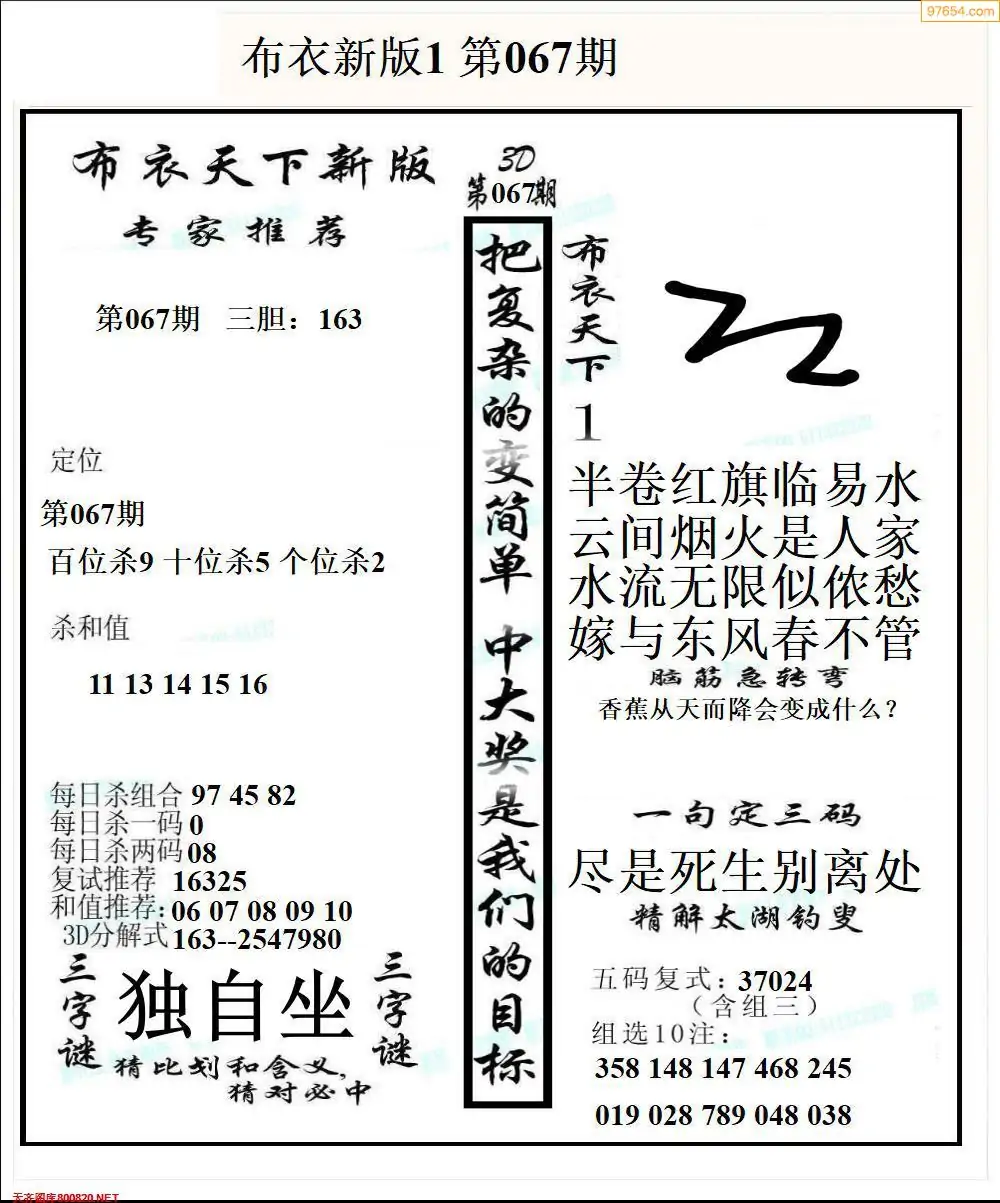 (2)26年067期本期3d图迷汇总_福彩3D图谜总汇图