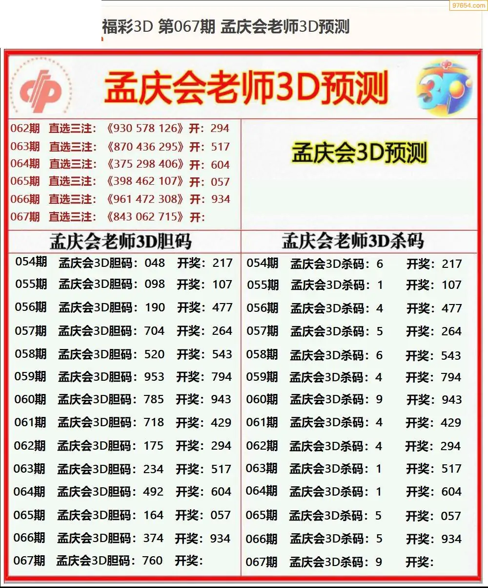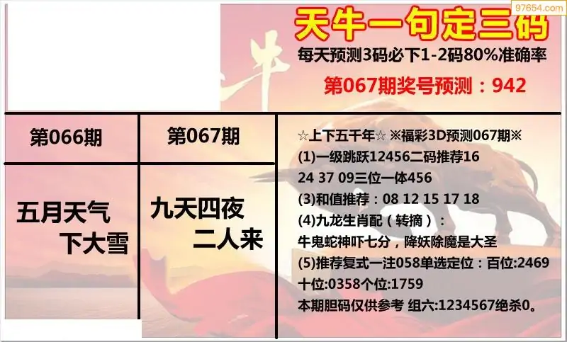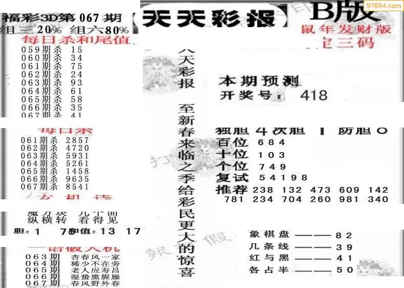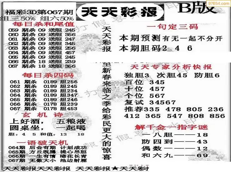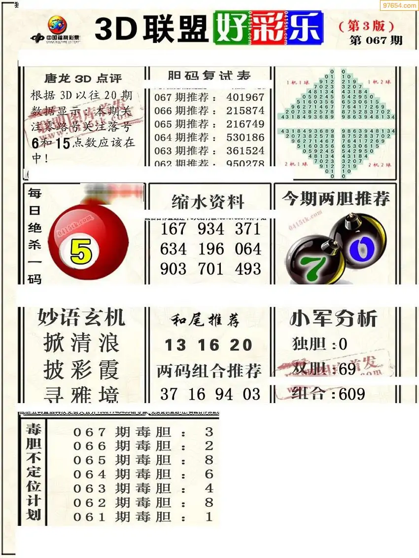 (8)26年067期今日3d各类彩报汇总