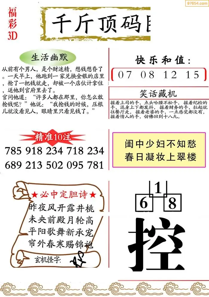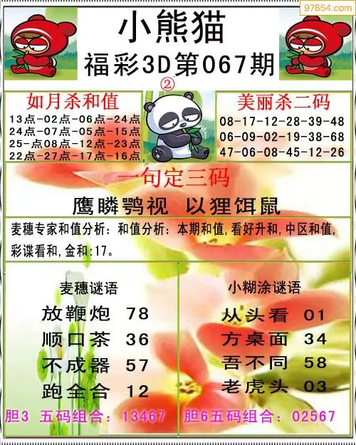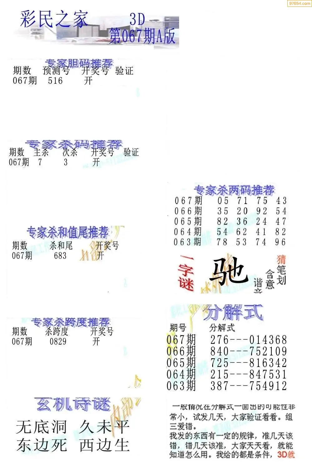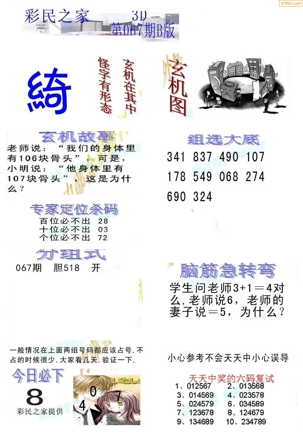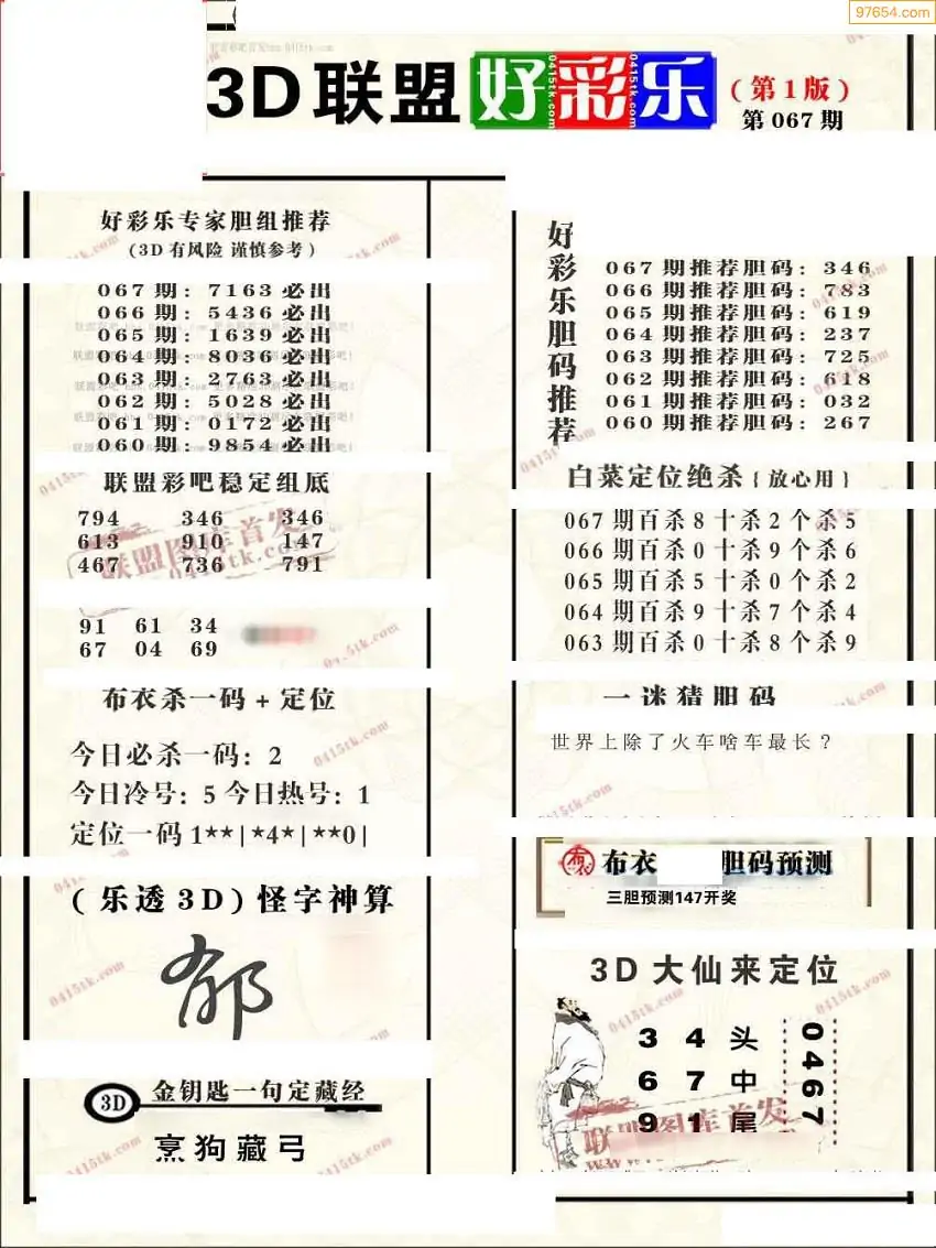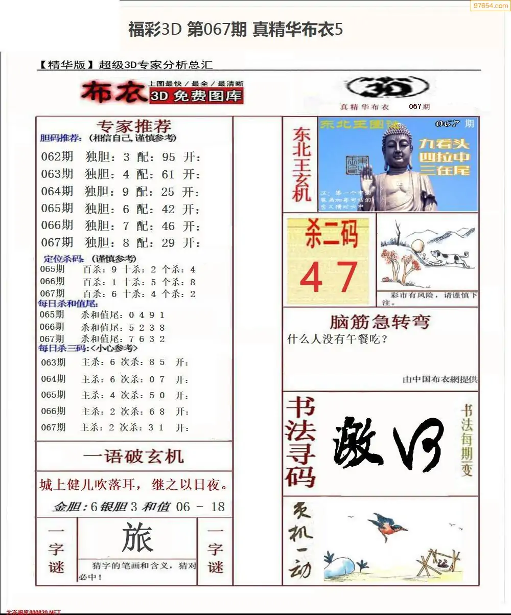 (3)2026067期3D预测总汇全图_福彩3d图谜字谜总汇