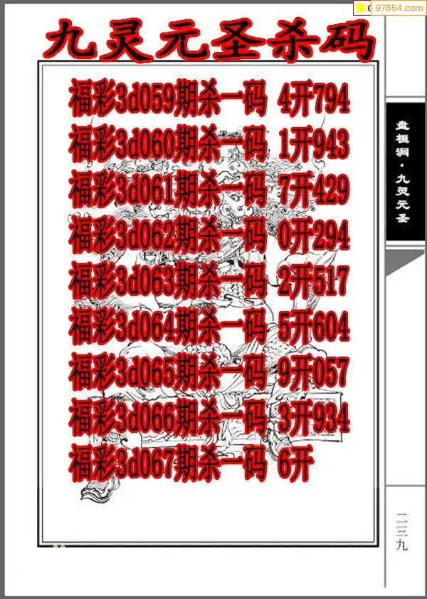 (3)2026066期3D预测总汇全图_福彩3d图谜字谜总汇
