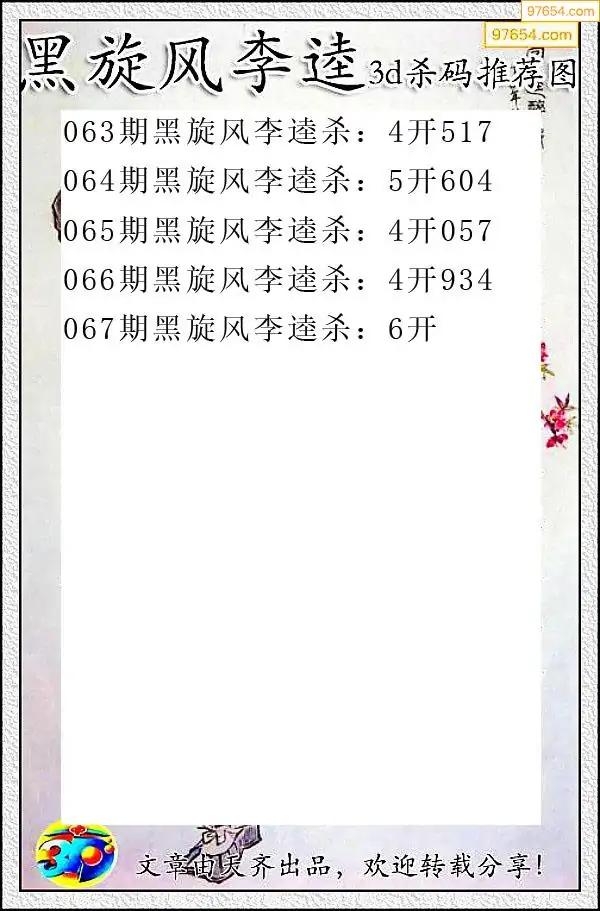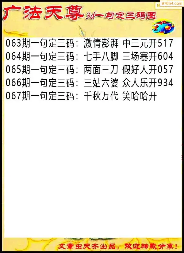 (3)2026066期3D预测总汇全图_福彩3d图谜字谜总汇