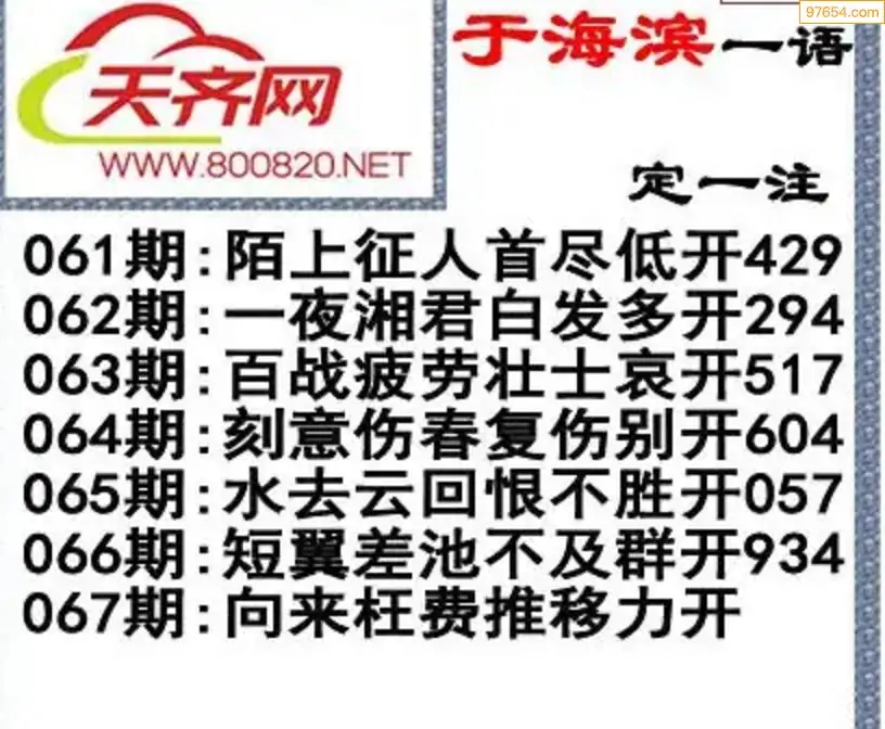 于海滨福彩3D26067期一语定一注