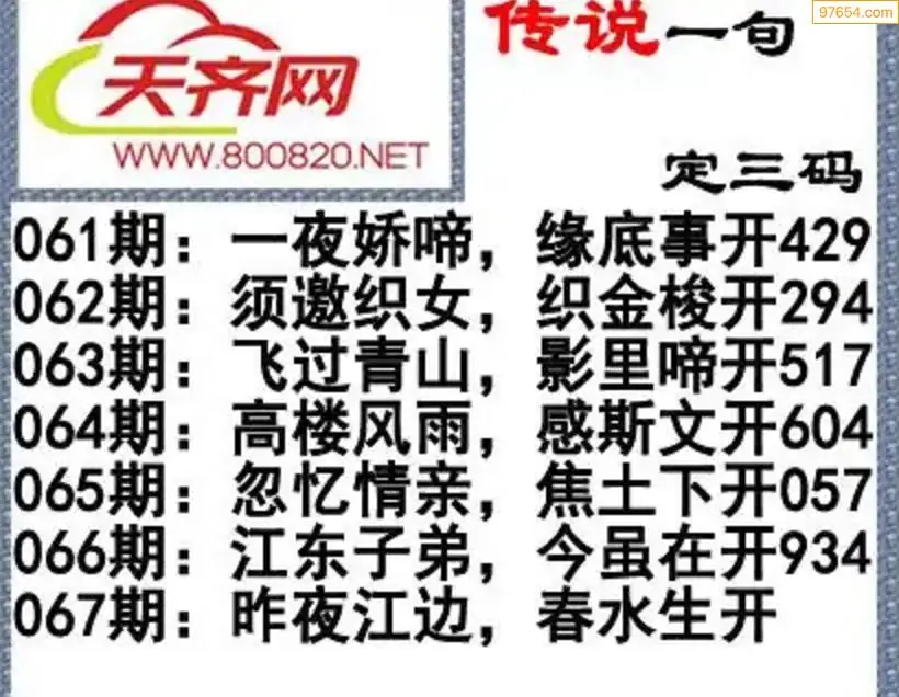 福彩3d26年067期字谜传说一句定三码