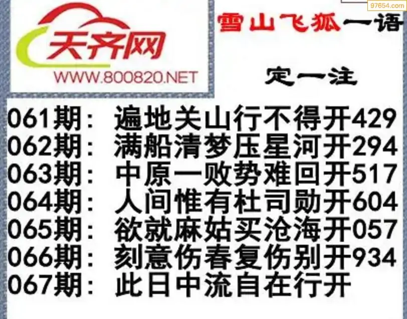 彩票3d字谜067期雪山飞狐一语定一注
