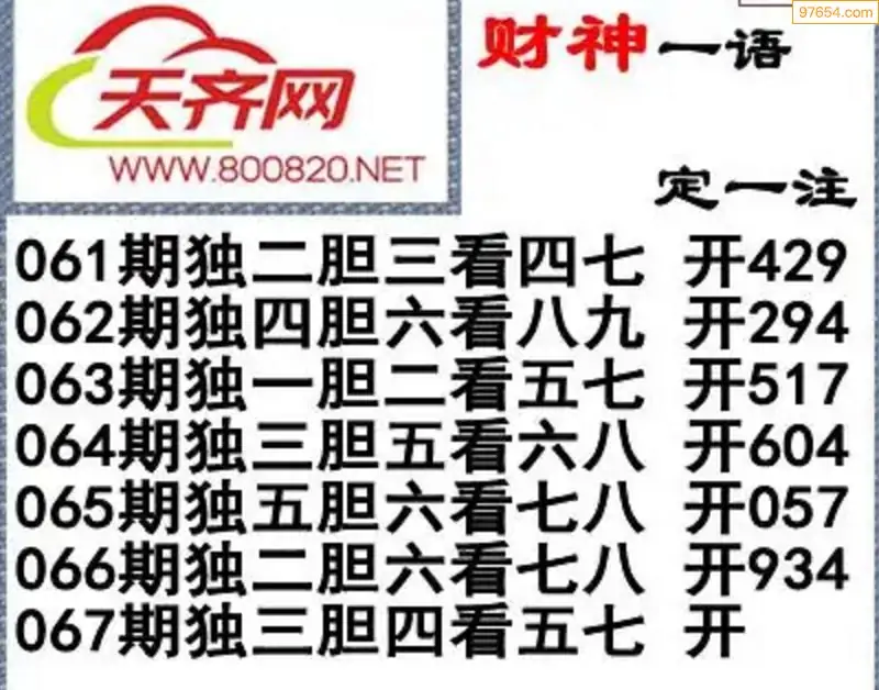 福彩3d左岸清风26年067期一语定一注