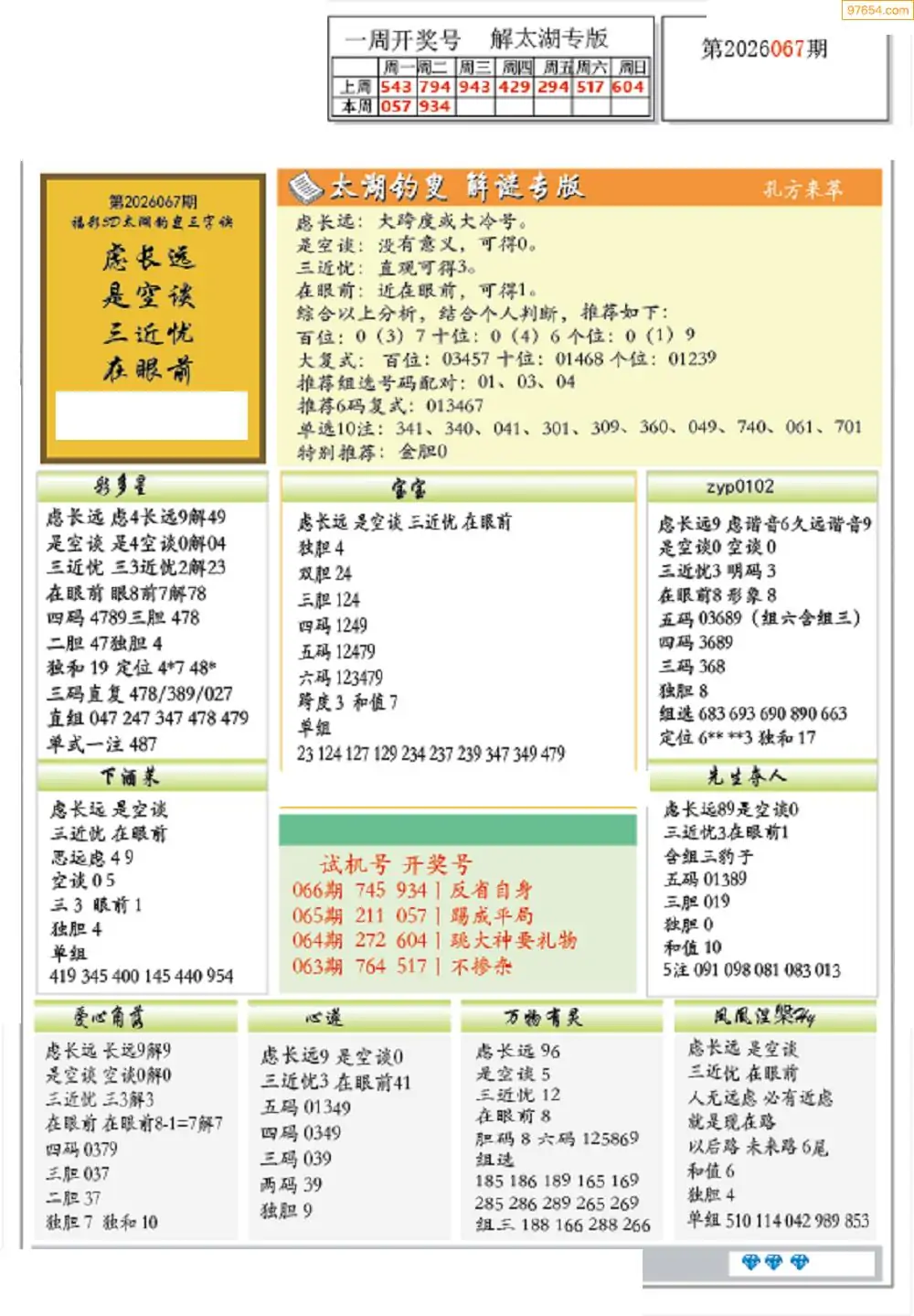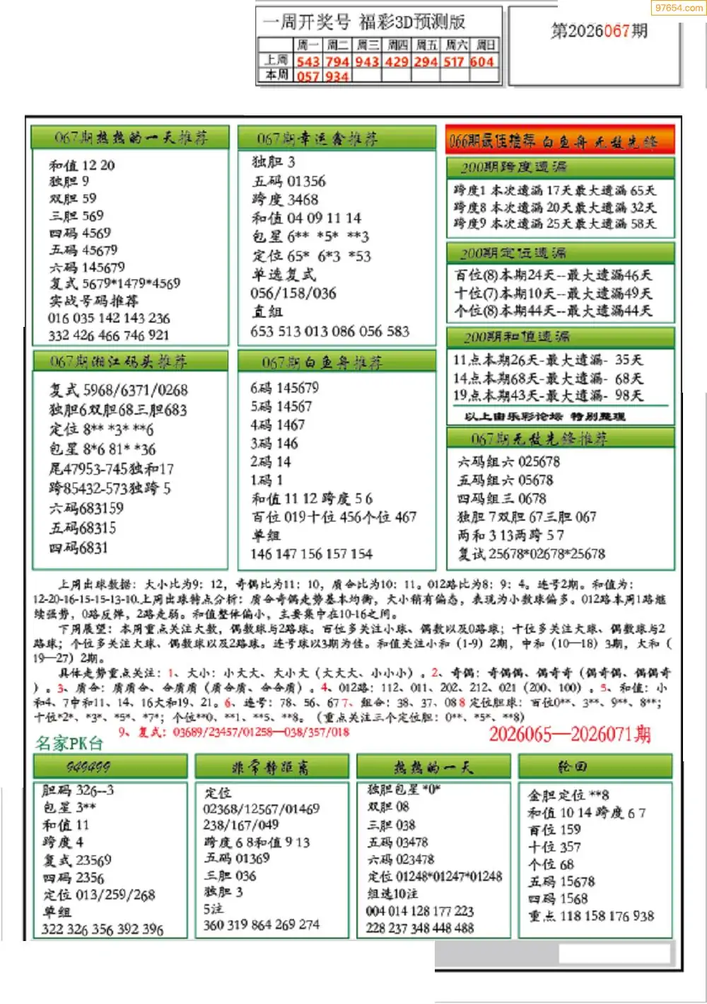 26年067期3D各板块资料整合汇总