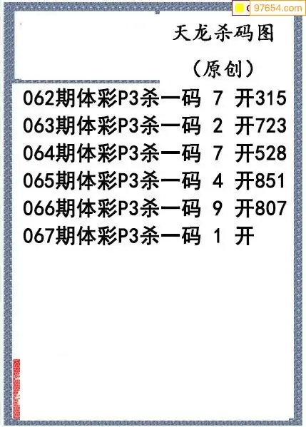 26年067期天龙体彩P3杀码图谜