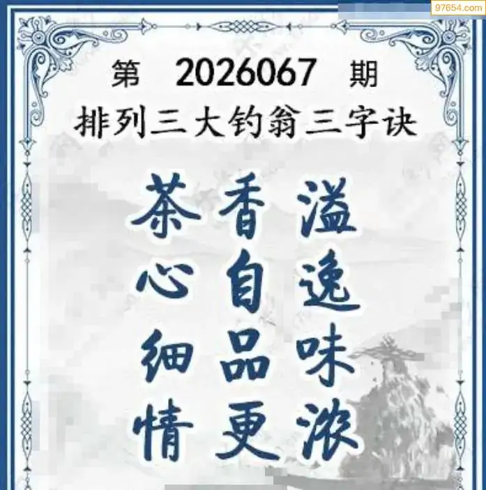 26年体彩p3第067期大钓翁三字诀