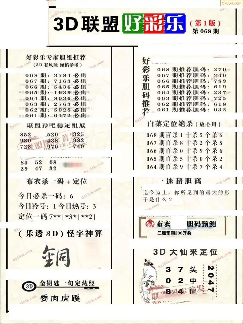 2026068期联盟好彩乐直通车1