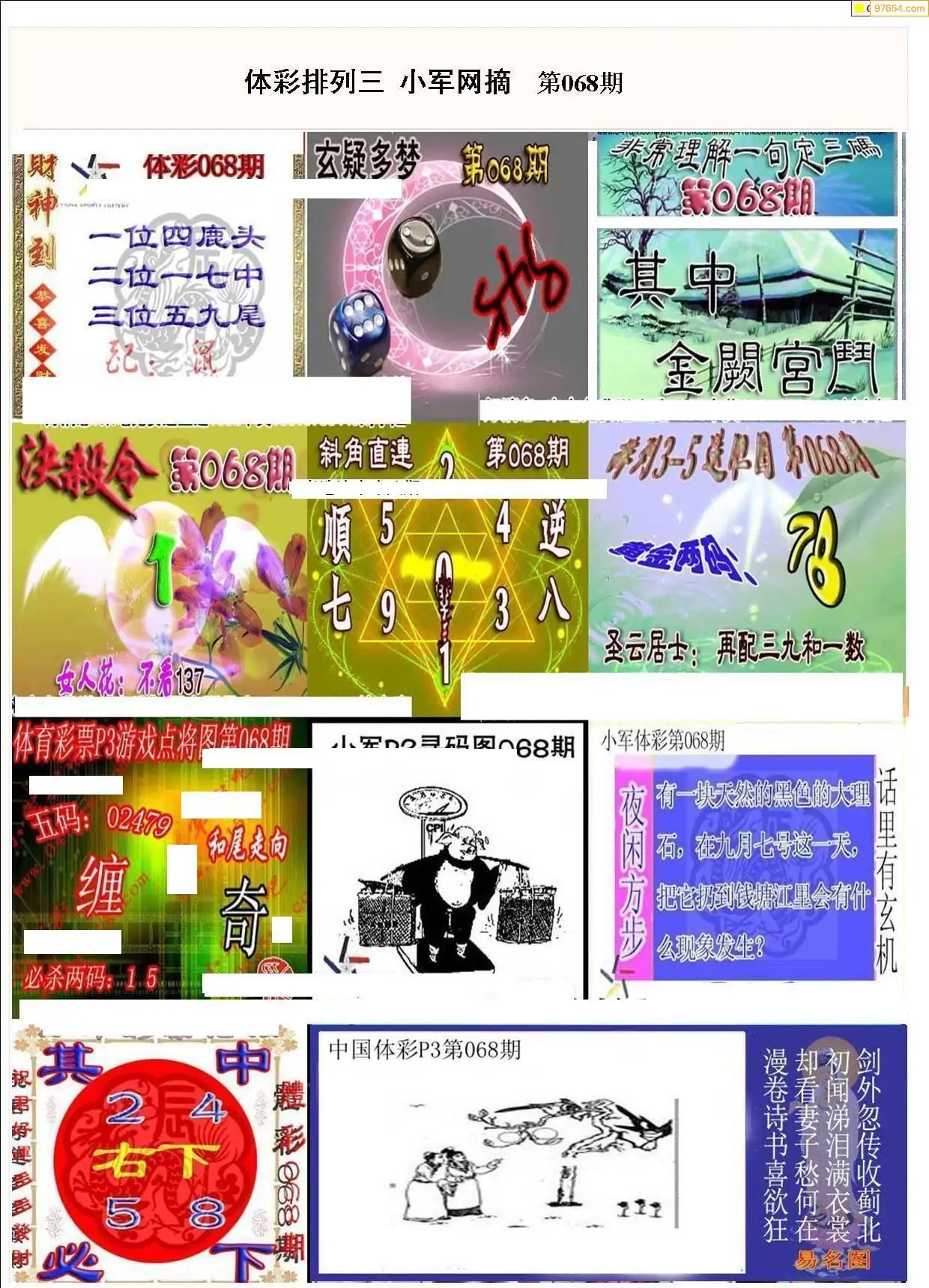 2026068期彩友图迷汇总_图迷汇总排列3图谜汇总考辑牛彩网