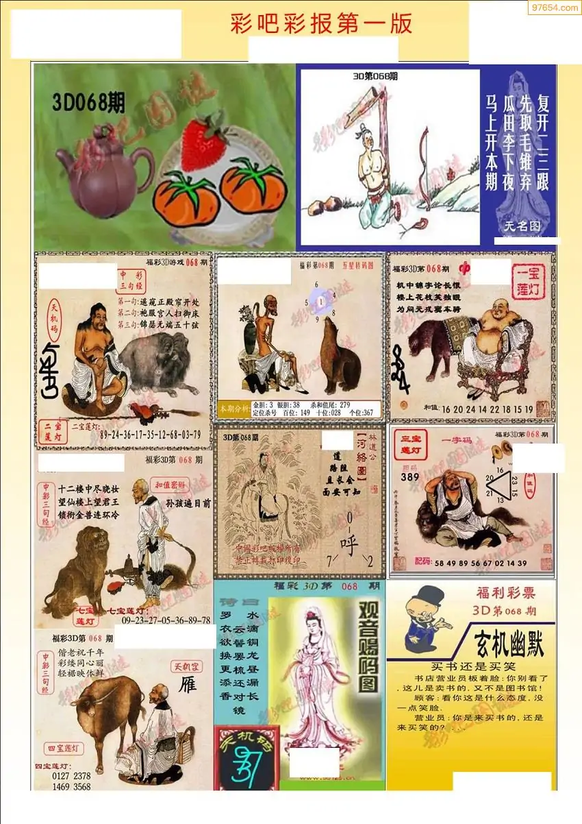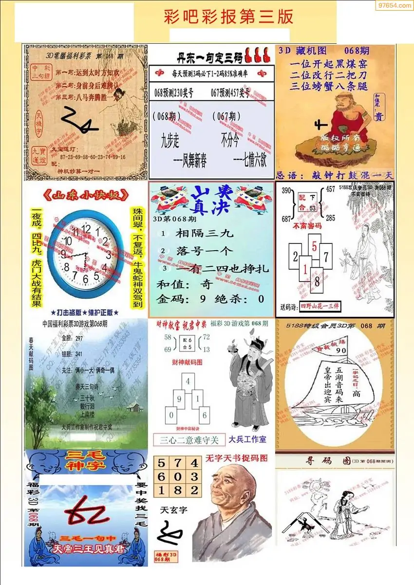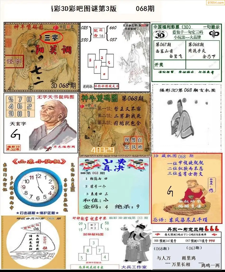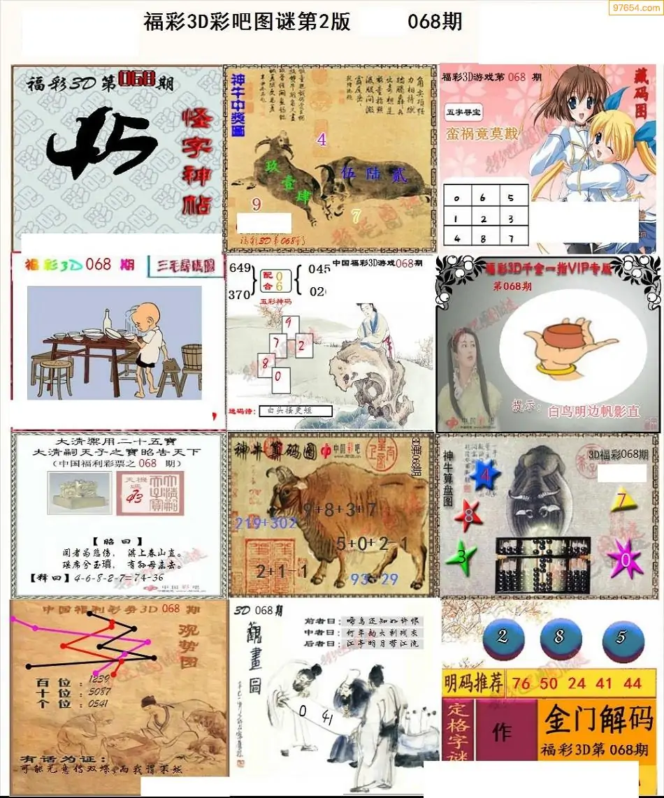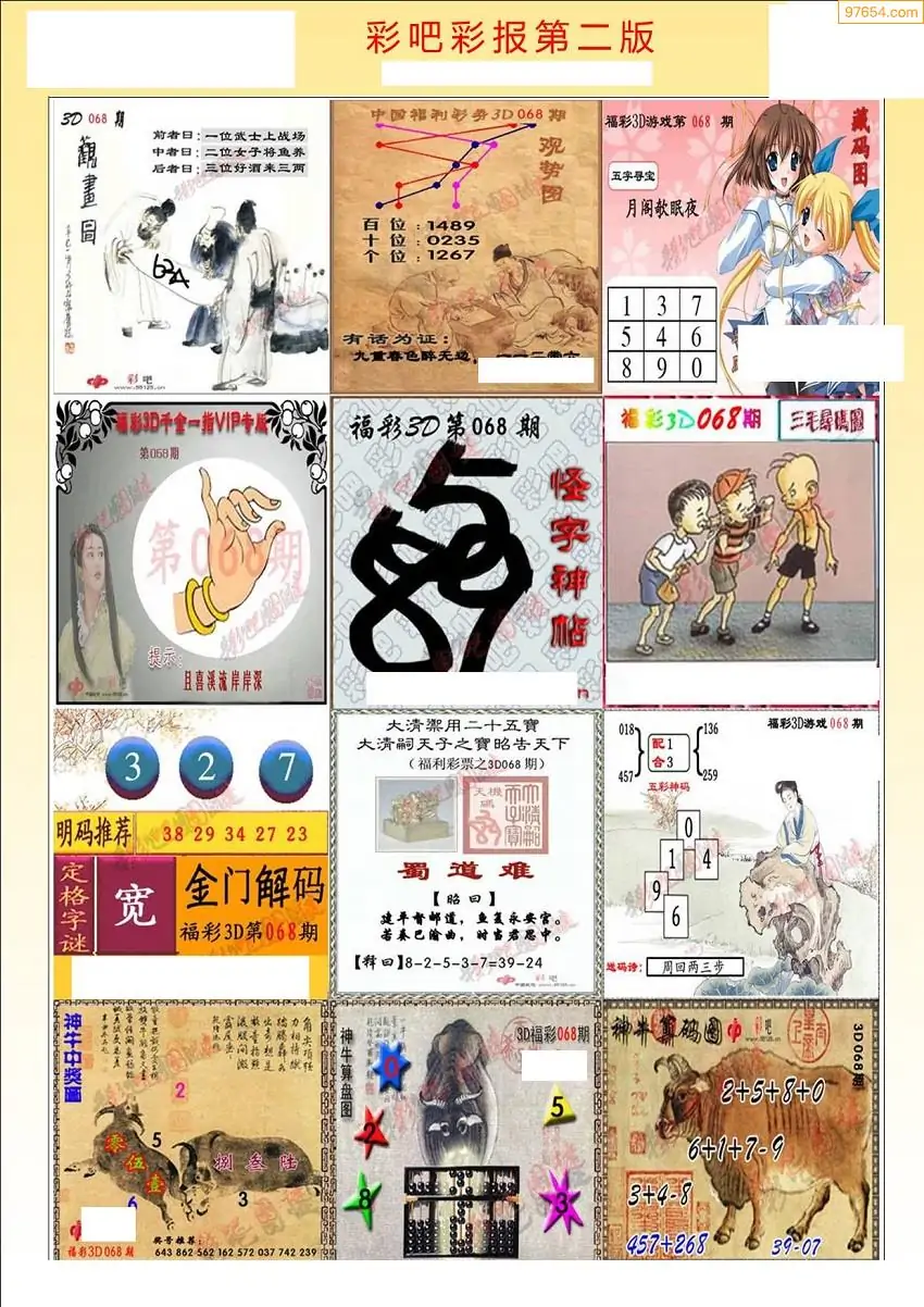 068期3D牛彩预测报+彩吧字谜报
