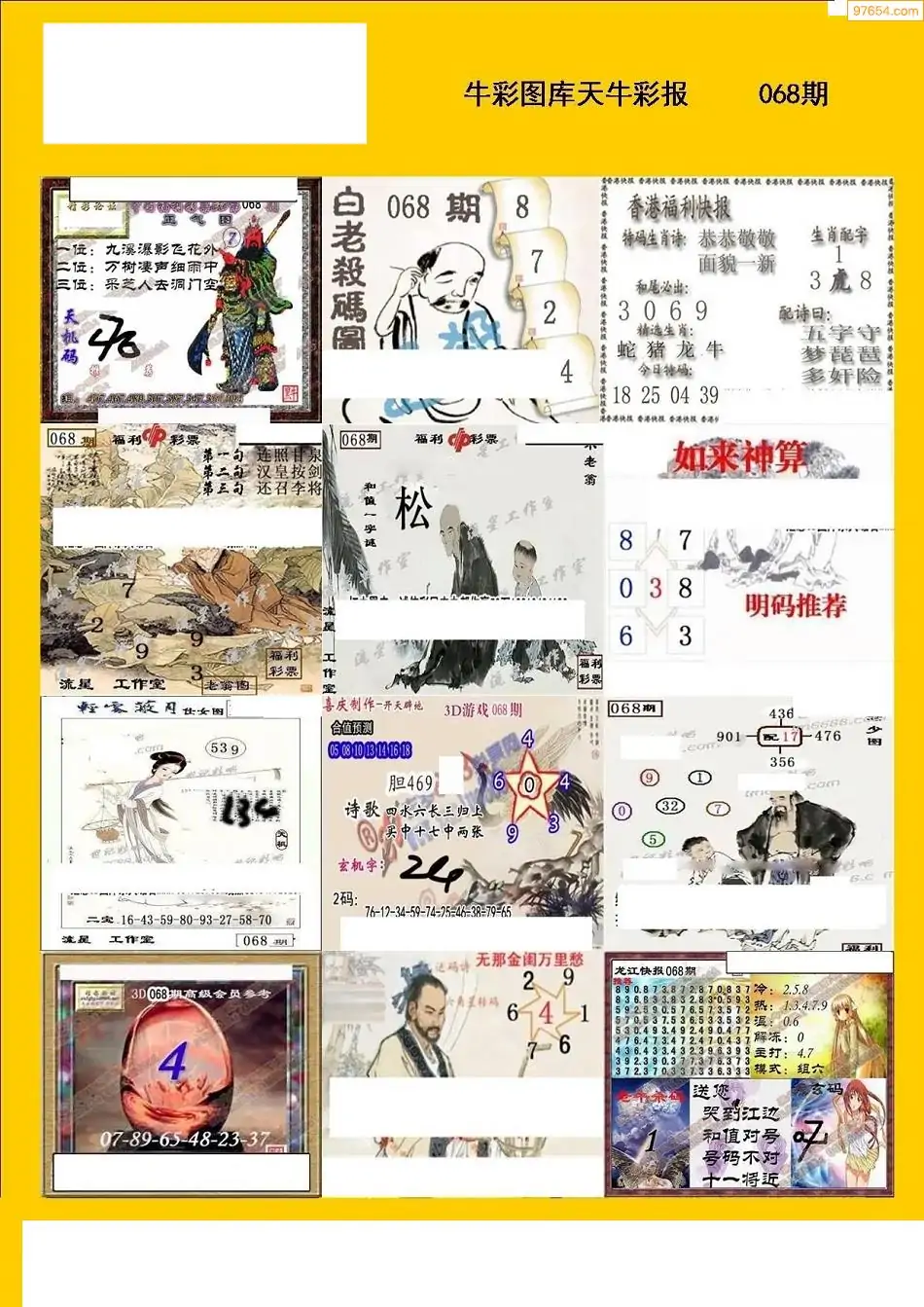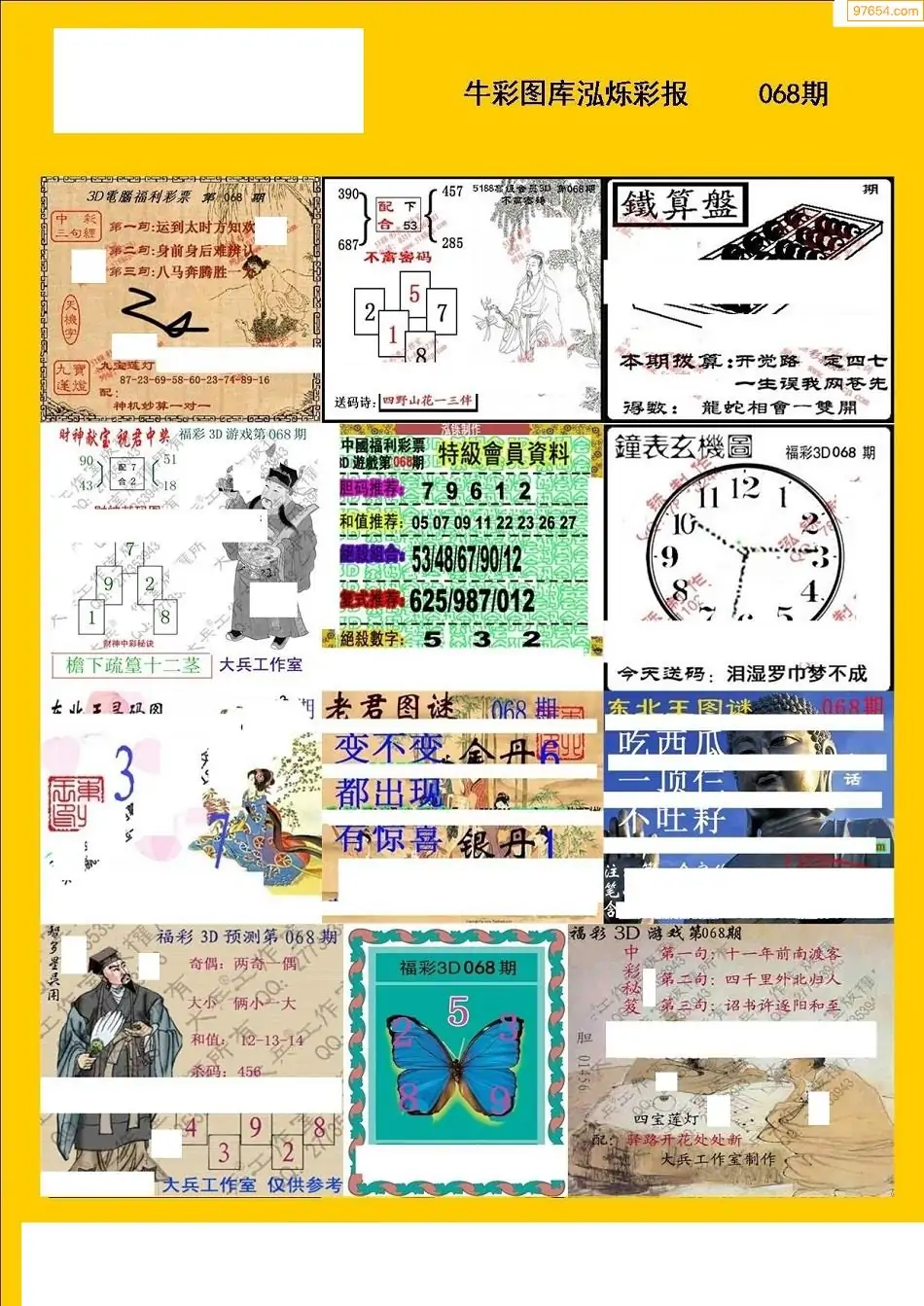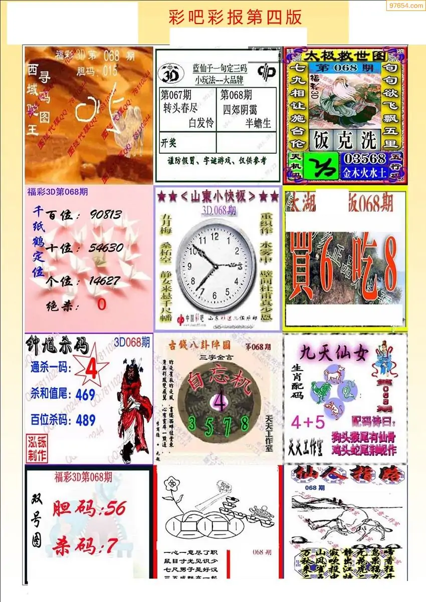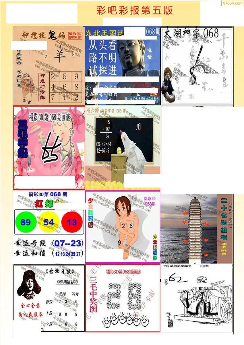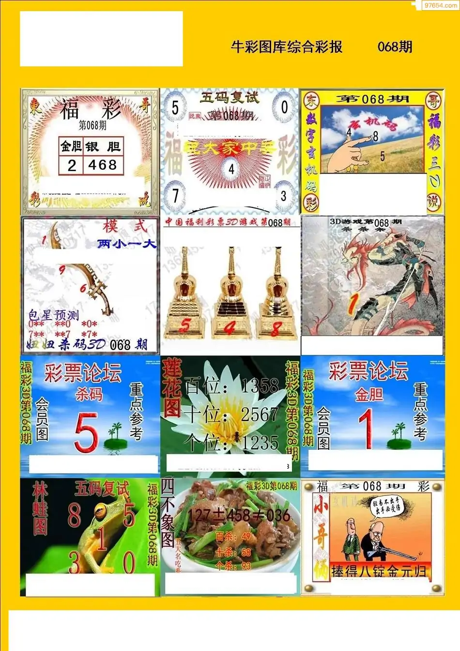 福彩3D068期天牛彩吧套图整合总汇