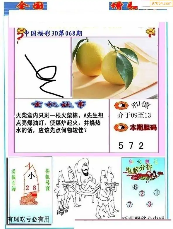 26年068期财神说彩3D综合图(原创)_3d财神到财神送胆