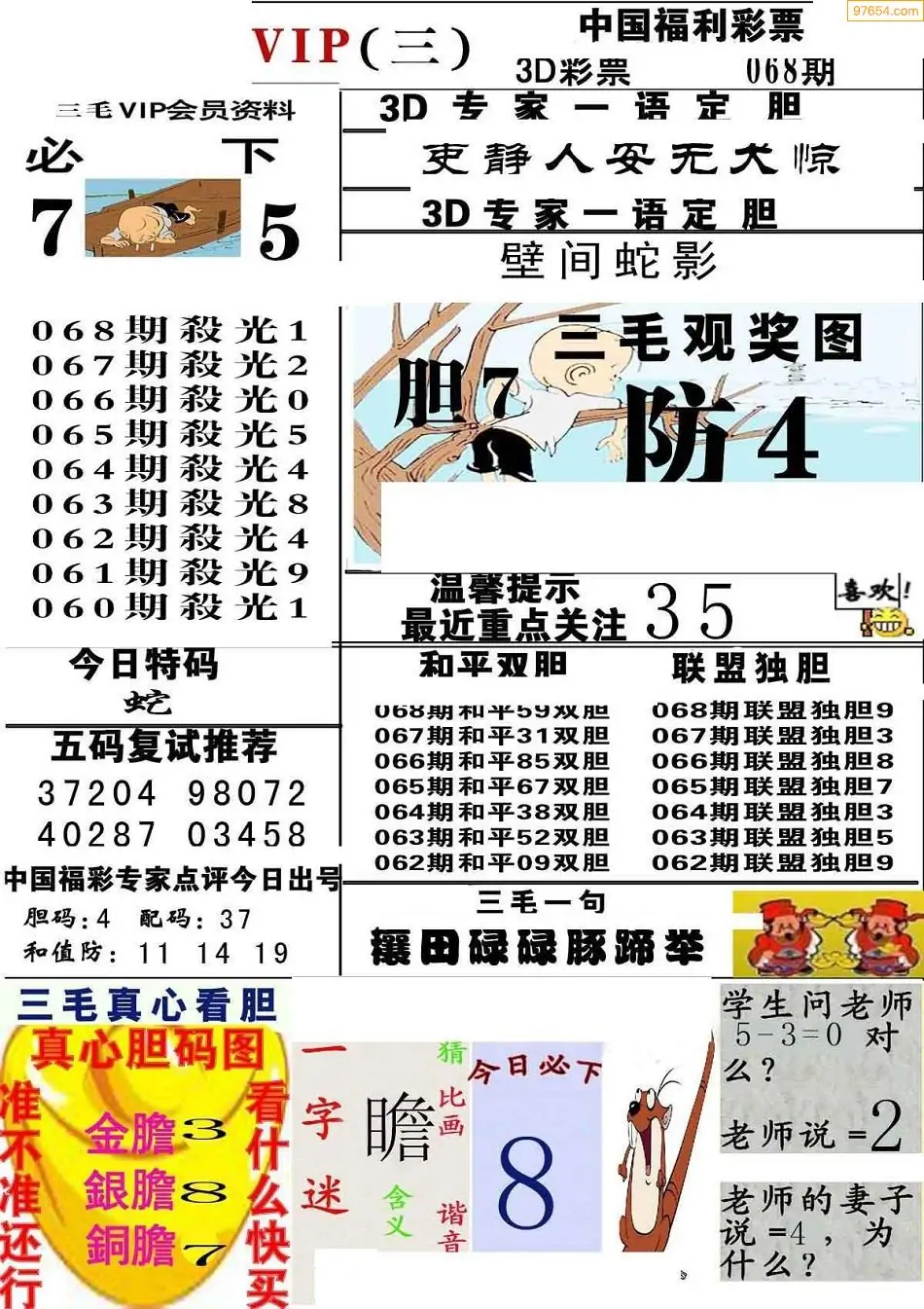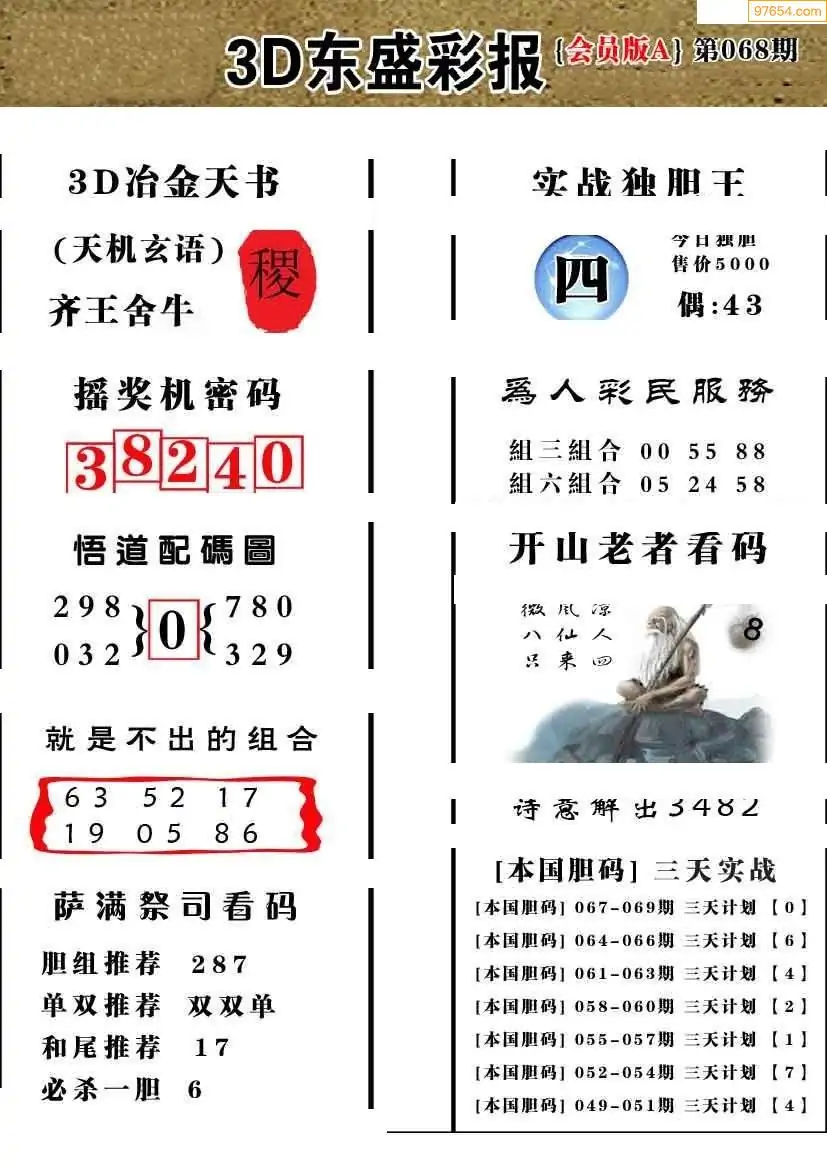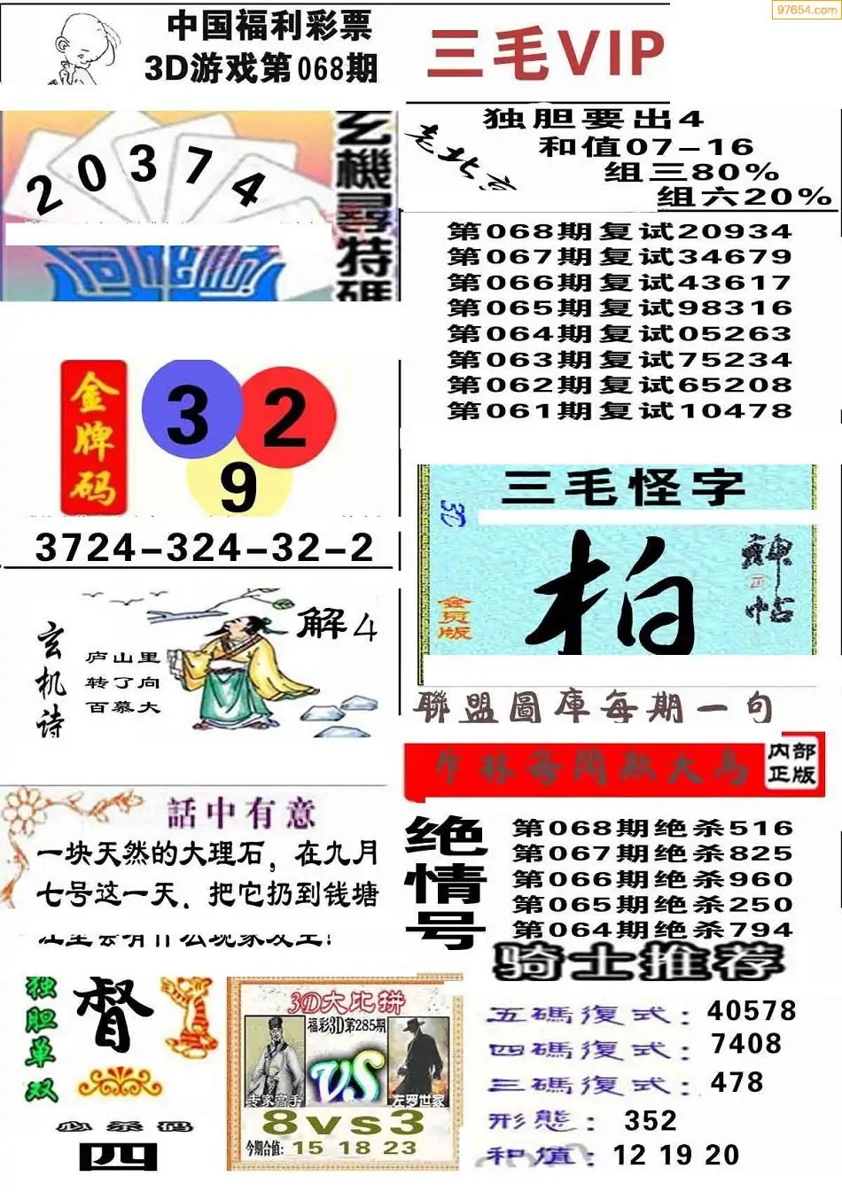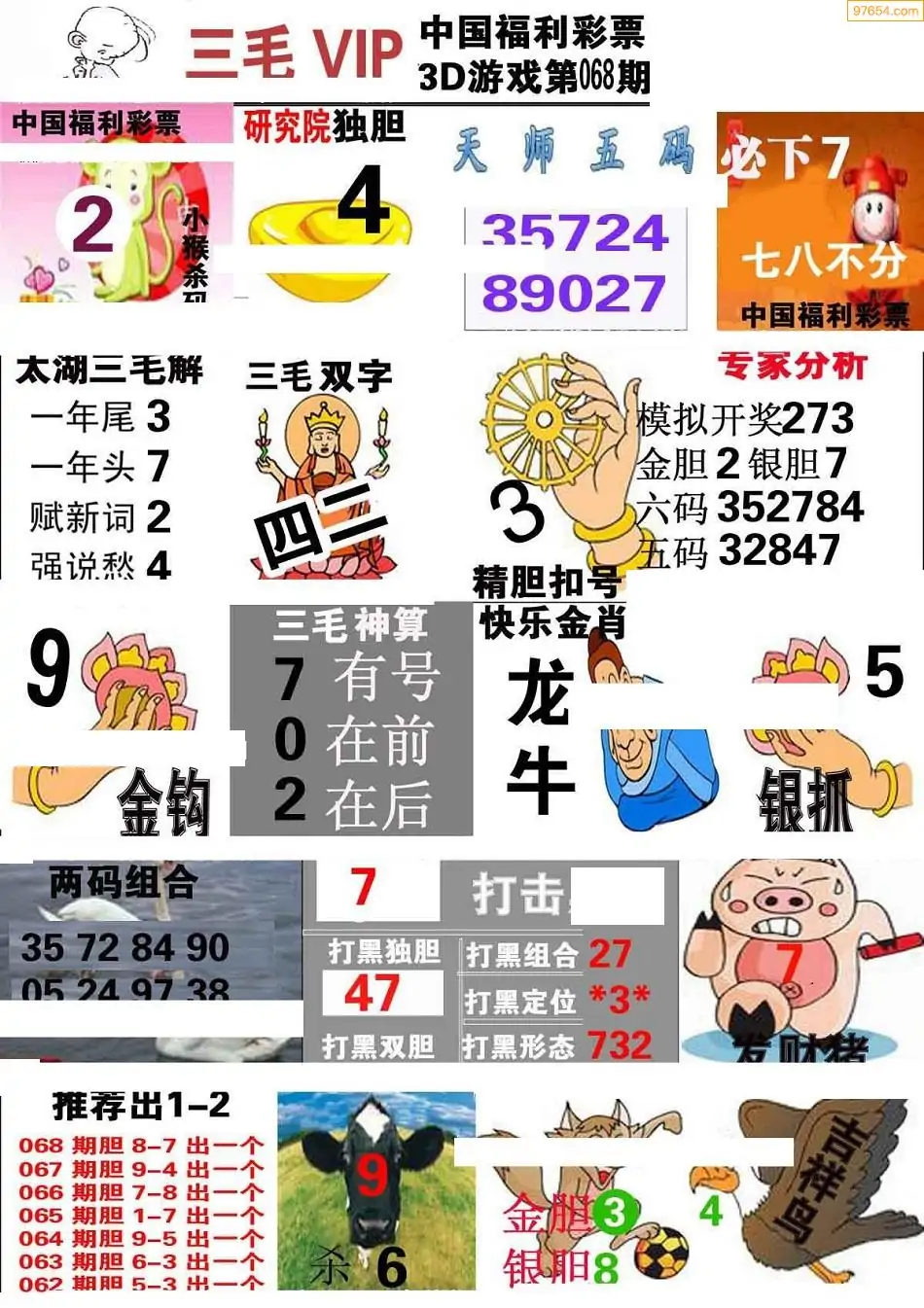 068期3D牛彩预测报+彩吧字谜报
