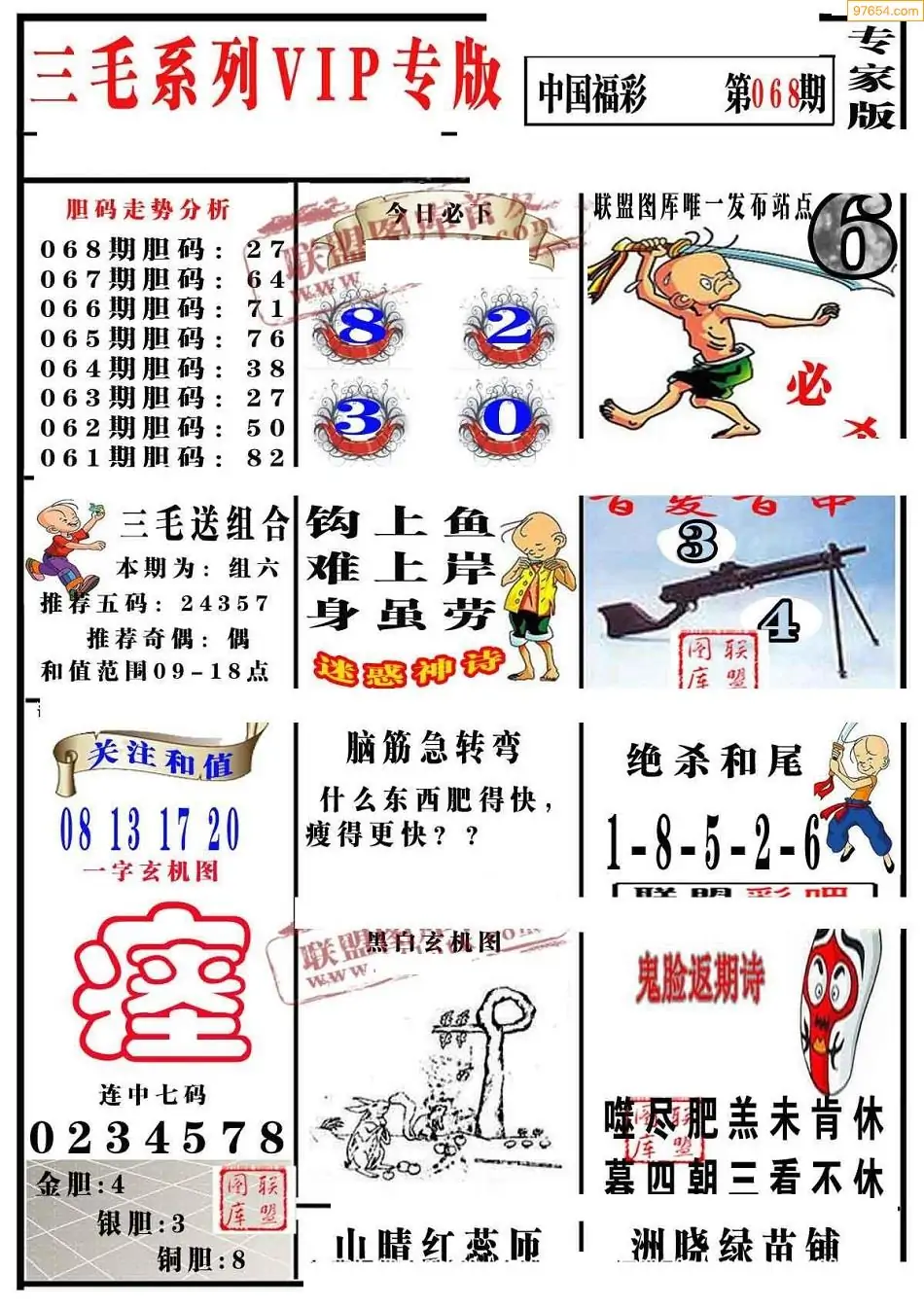 福彩3D068期天牛彩吧套图整合总汇