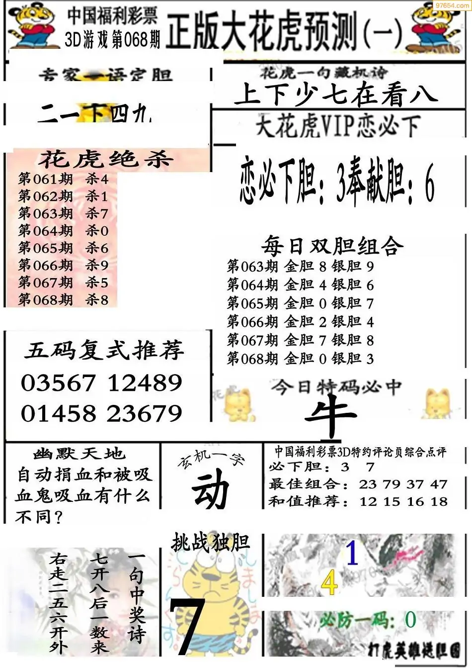 福彩3D068期天牛彩吧套图整合总汇