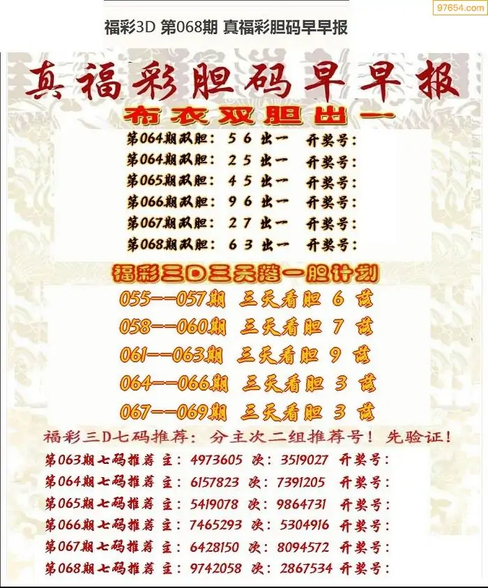 3d原创068期东北财神预测
