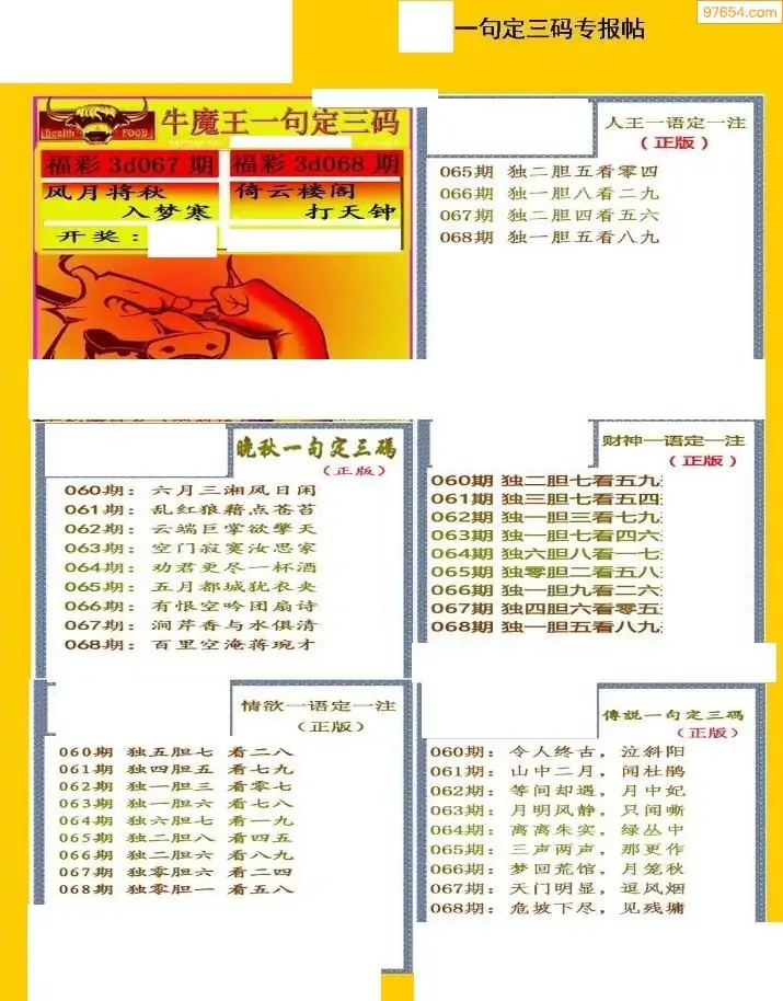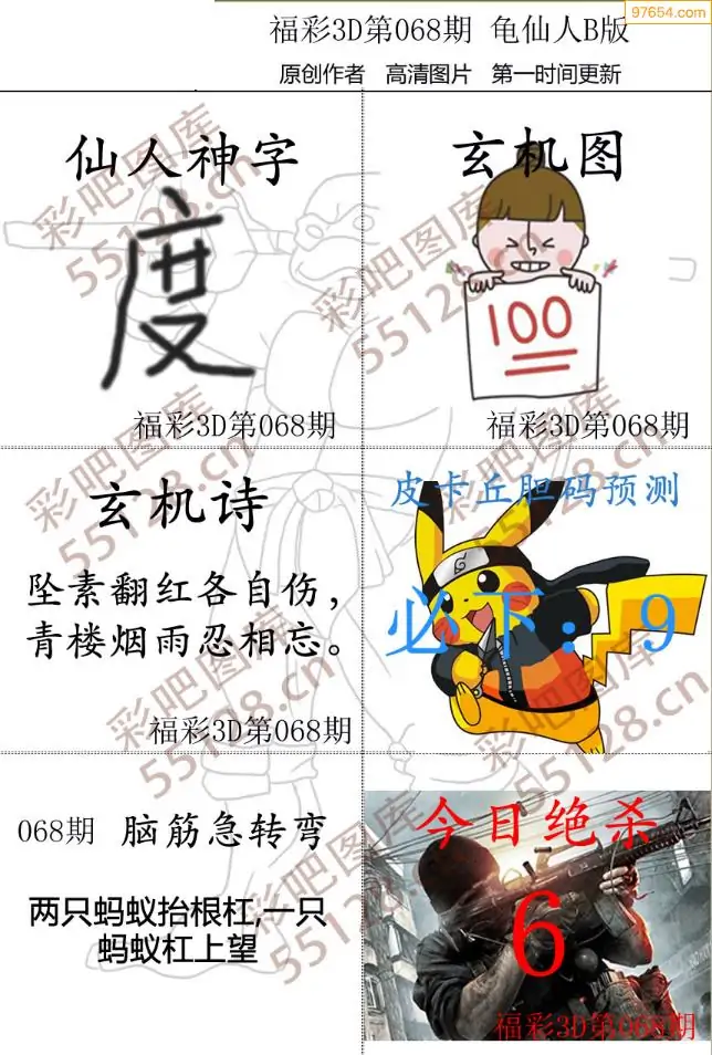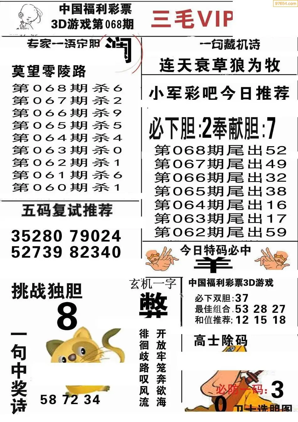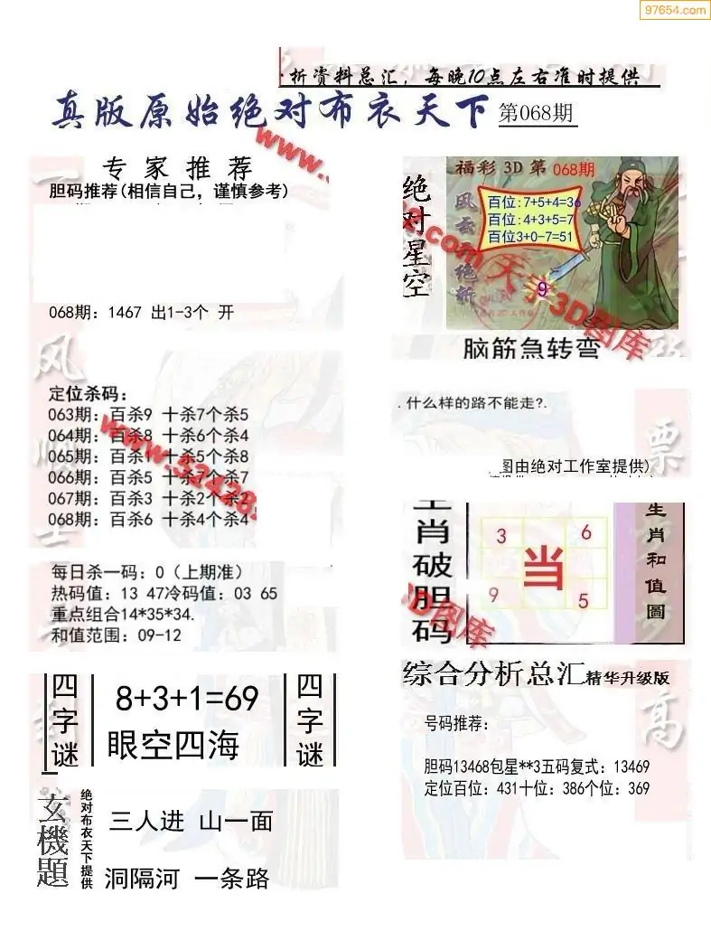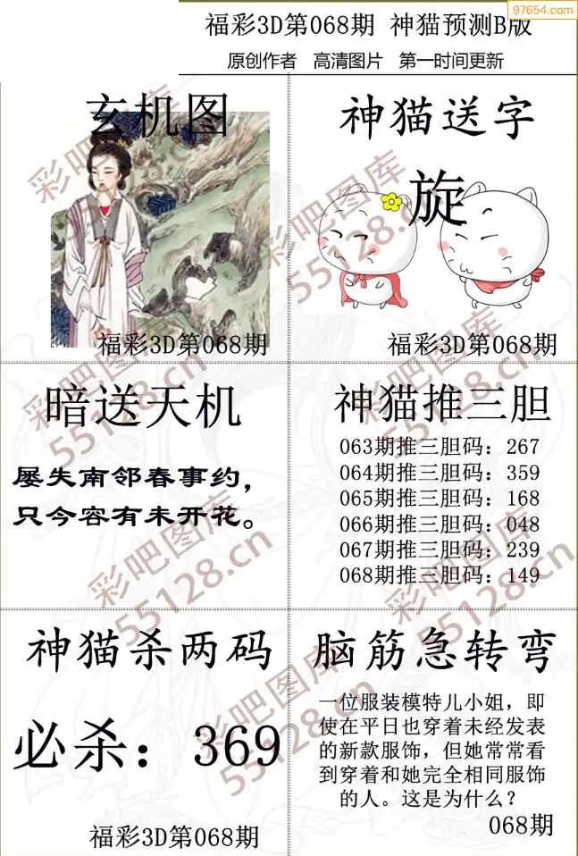 (2)26年068期本期3d图迷汇总_福彩3D图谜总汇图