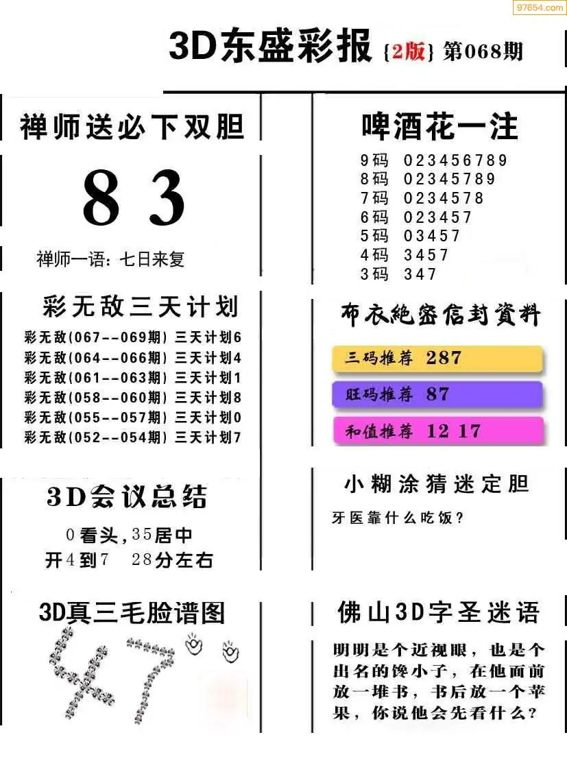 (3)2026068期3D预测总汇全图_福彩3d图谜字谜总汇