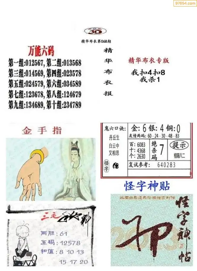 068期3D彩吧图库精华布衣图123456分享