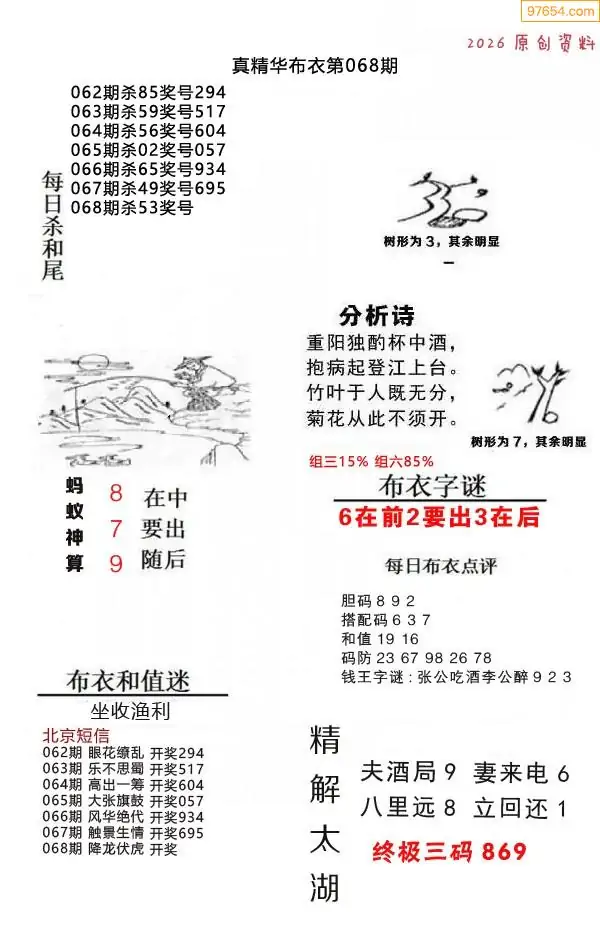 福彩068期3d真精华布衣+布衣早报(转载)