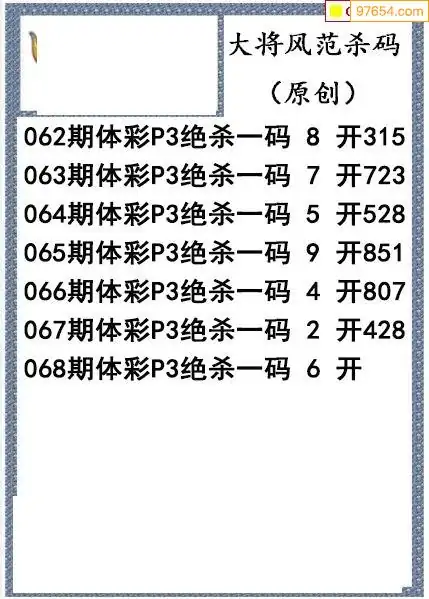 E族图068期体彩p3专家条件分析图谜_体彩图谜打印版
