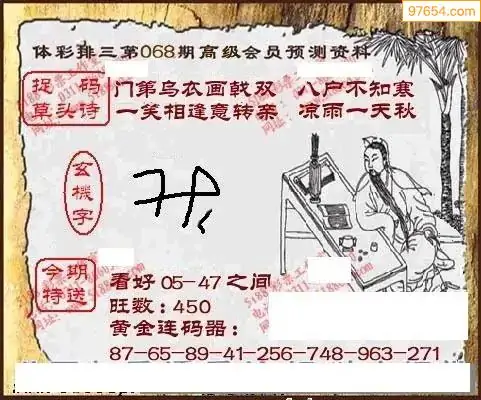 26年天吉体彩P3玄机怪字068期图迷